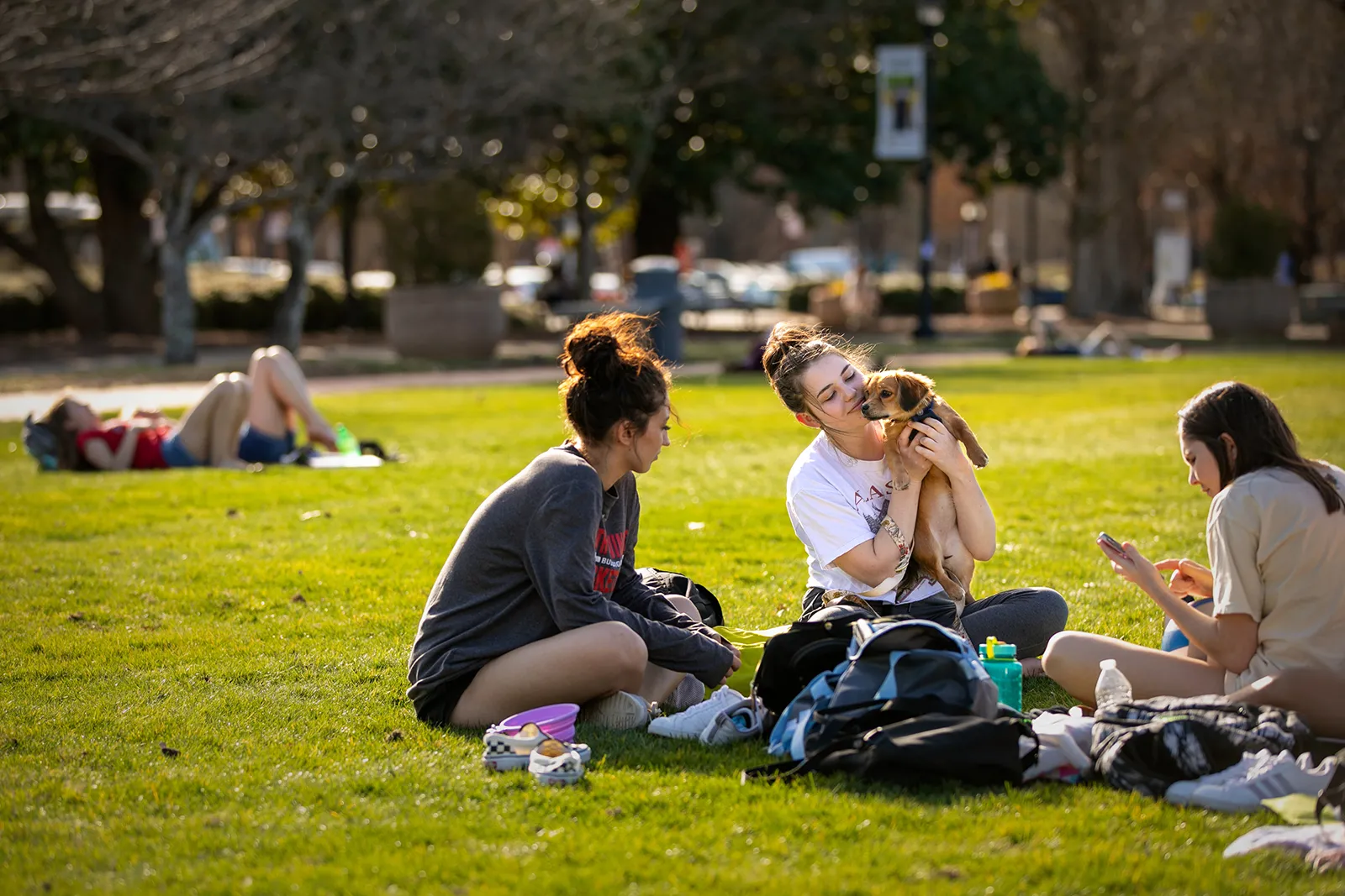 Students enjoy a warm afternoon on the campus green on Monday February 3, 2020, in Kennesaw, Ga.