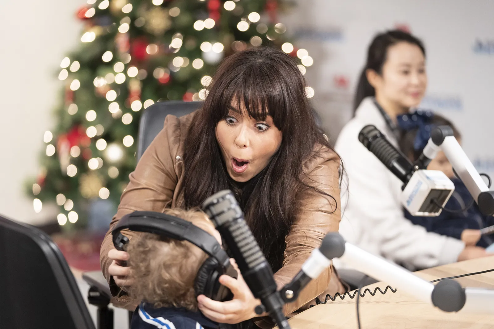 Singer Jenna LaMaster celebrates the holidays with patients in Seacrest Studio at Children's Hospital.