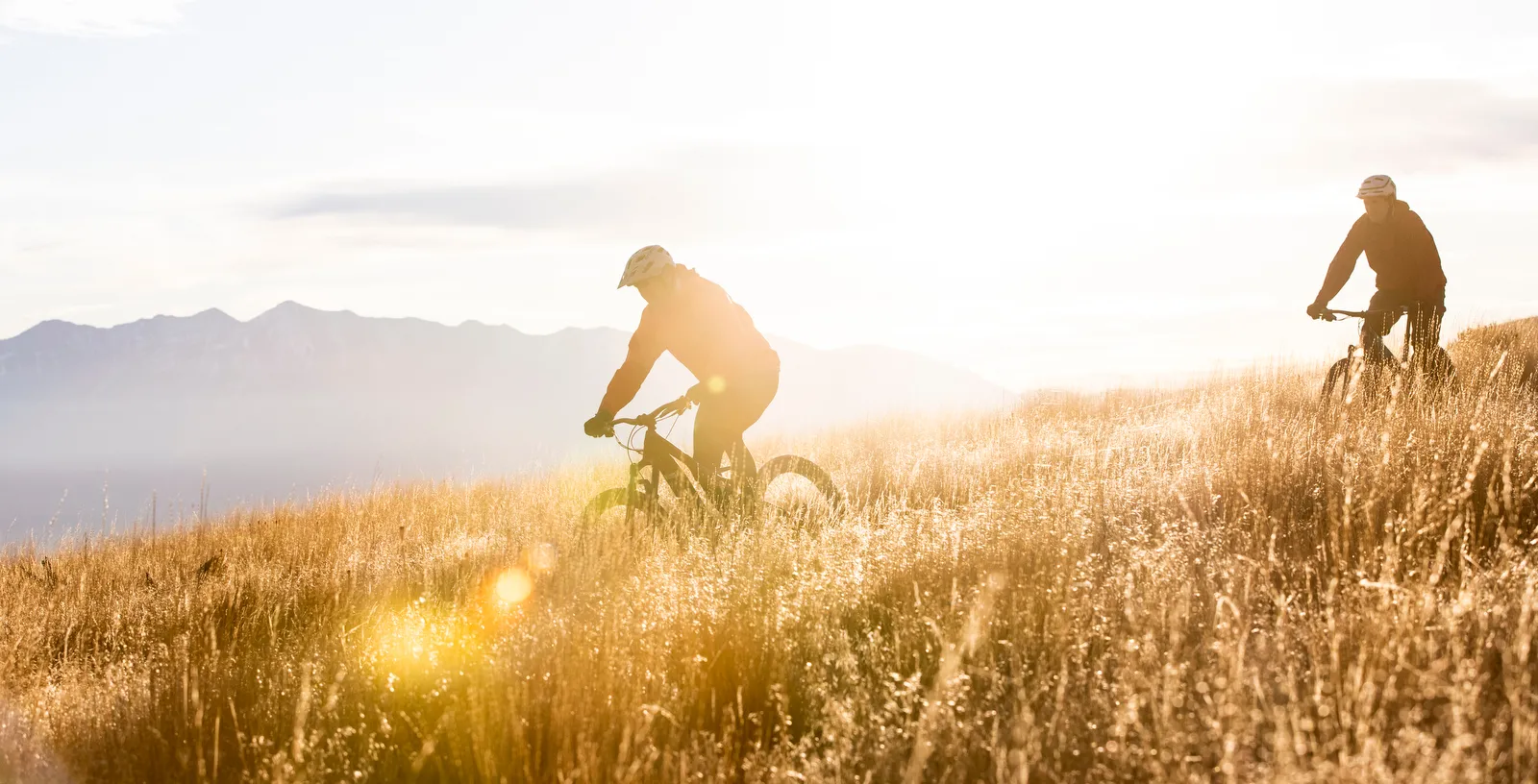 Photo of professors riding a mountain bike and an eBike for study on heart rates between the two different bikes.
