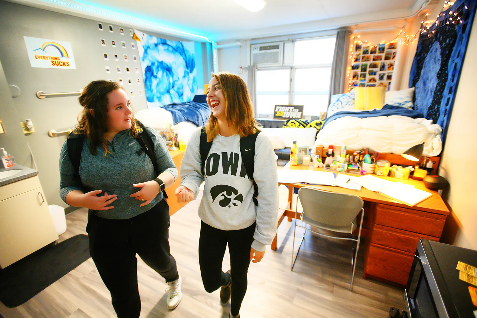Roommates Katie and Sarah in their dorm room in Burge Residence Hall.