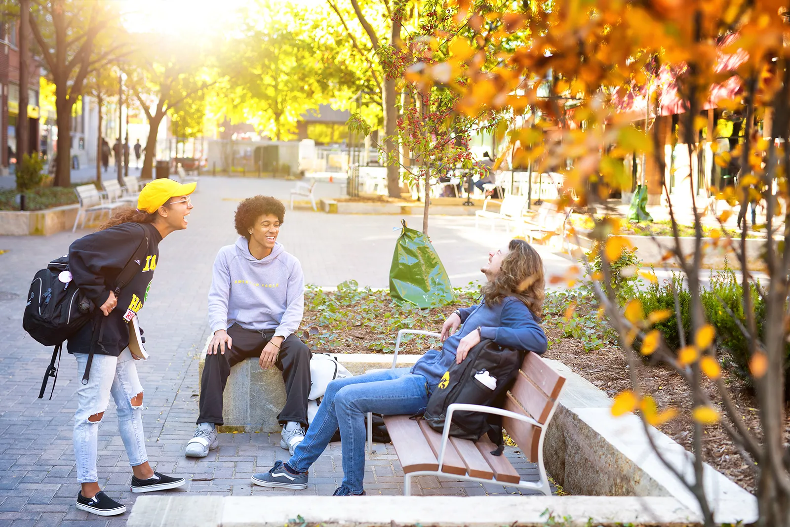 Students mingle on the downtown ped mall on a Fall afternoon.