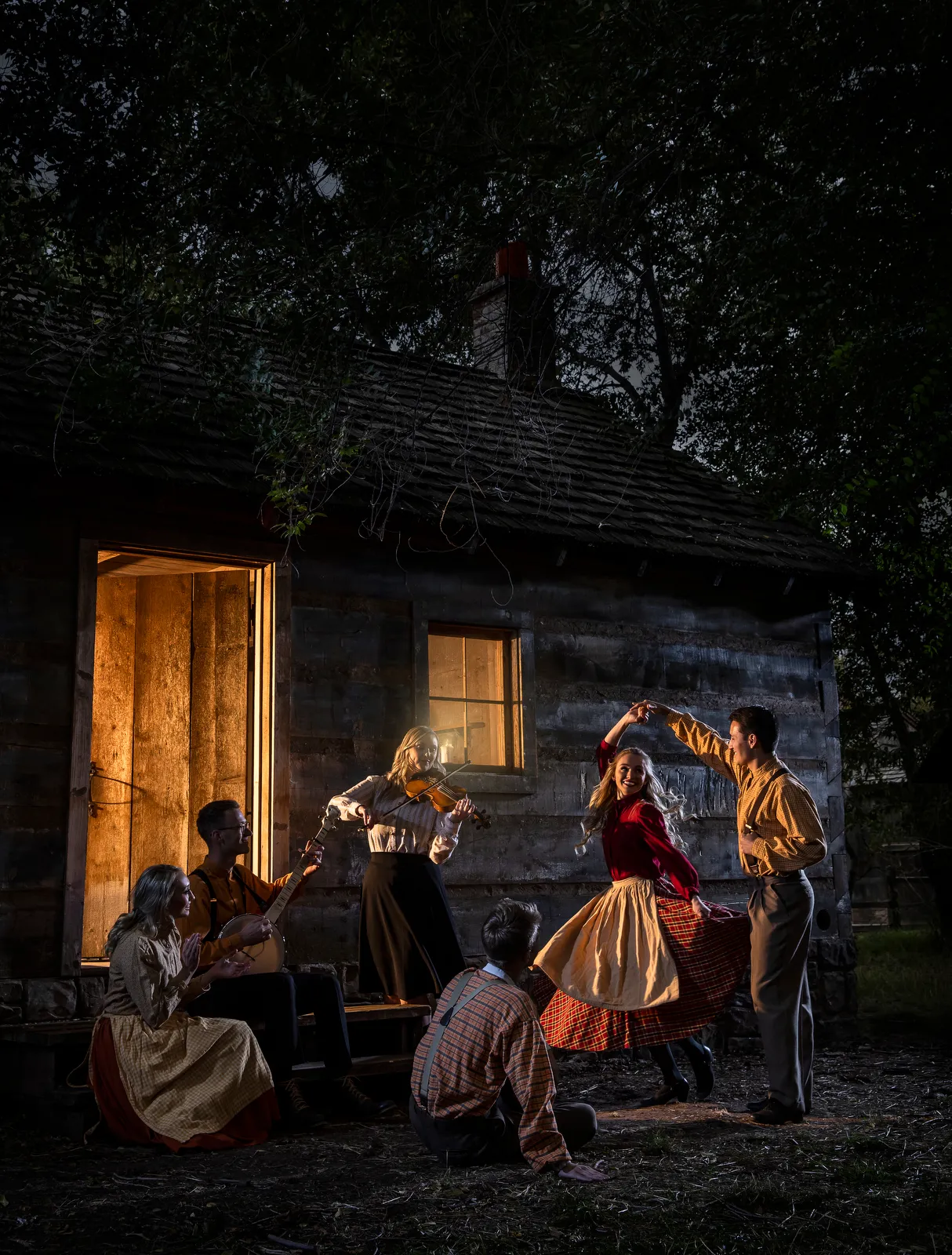 Photo shoot for promotional material for the International Folk Dance Ensemble. Photographed during the day and made it look like night.