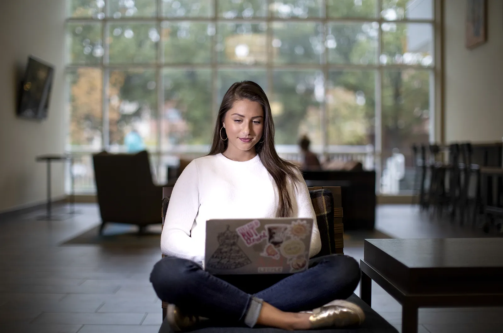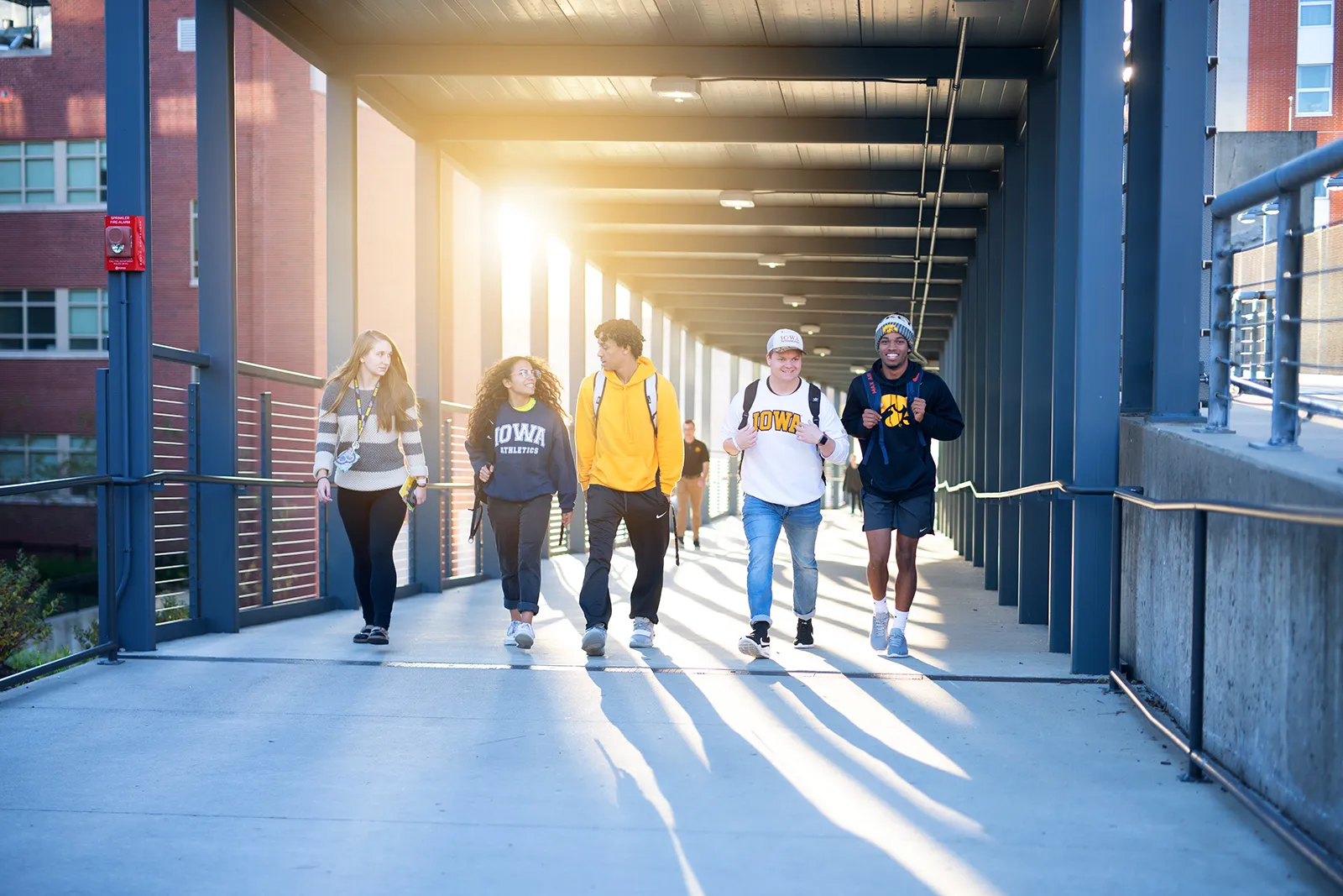 Students make their way from Catlett Residence Hall via the skywalk in the late afternoon.