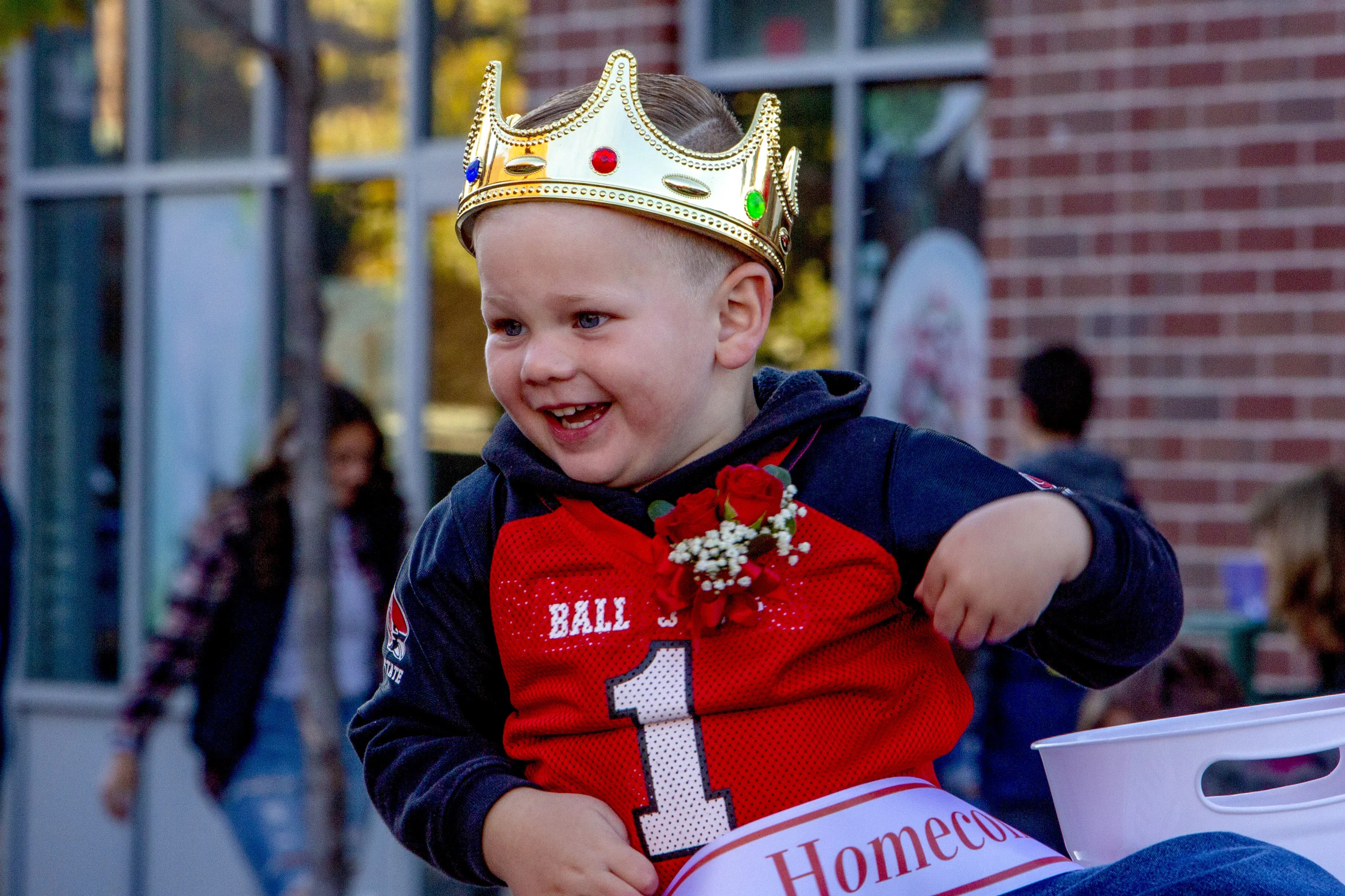 A baby king was passing out candy during the Homecoming Parade.