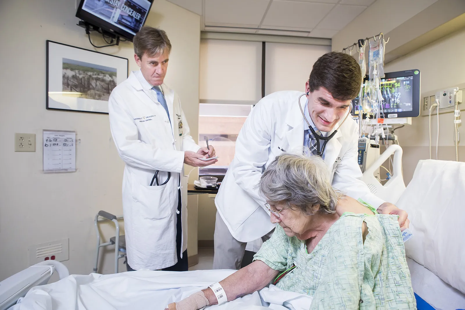 Anderson Spickard, M.D., having a Master Clinical Teacher session with medical student and patient at Vanderbilt Hospital