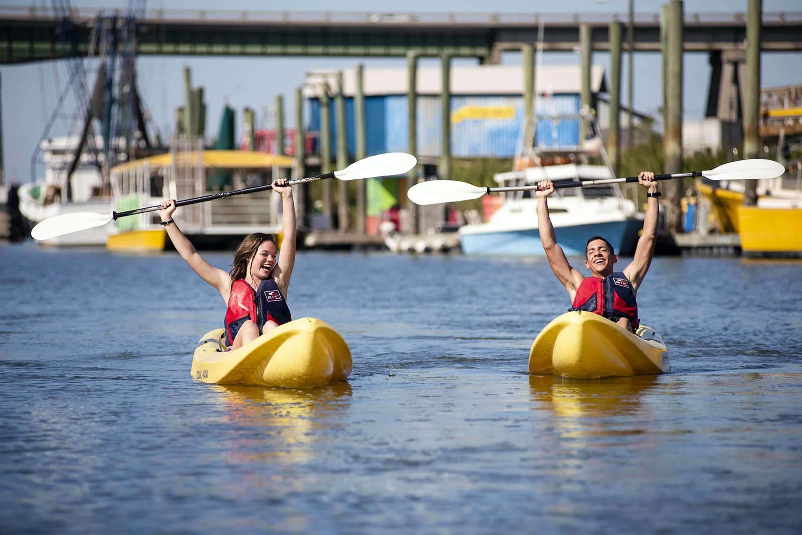 A couple of ROTC students race kayaks in nearby Lazaretto Creek.