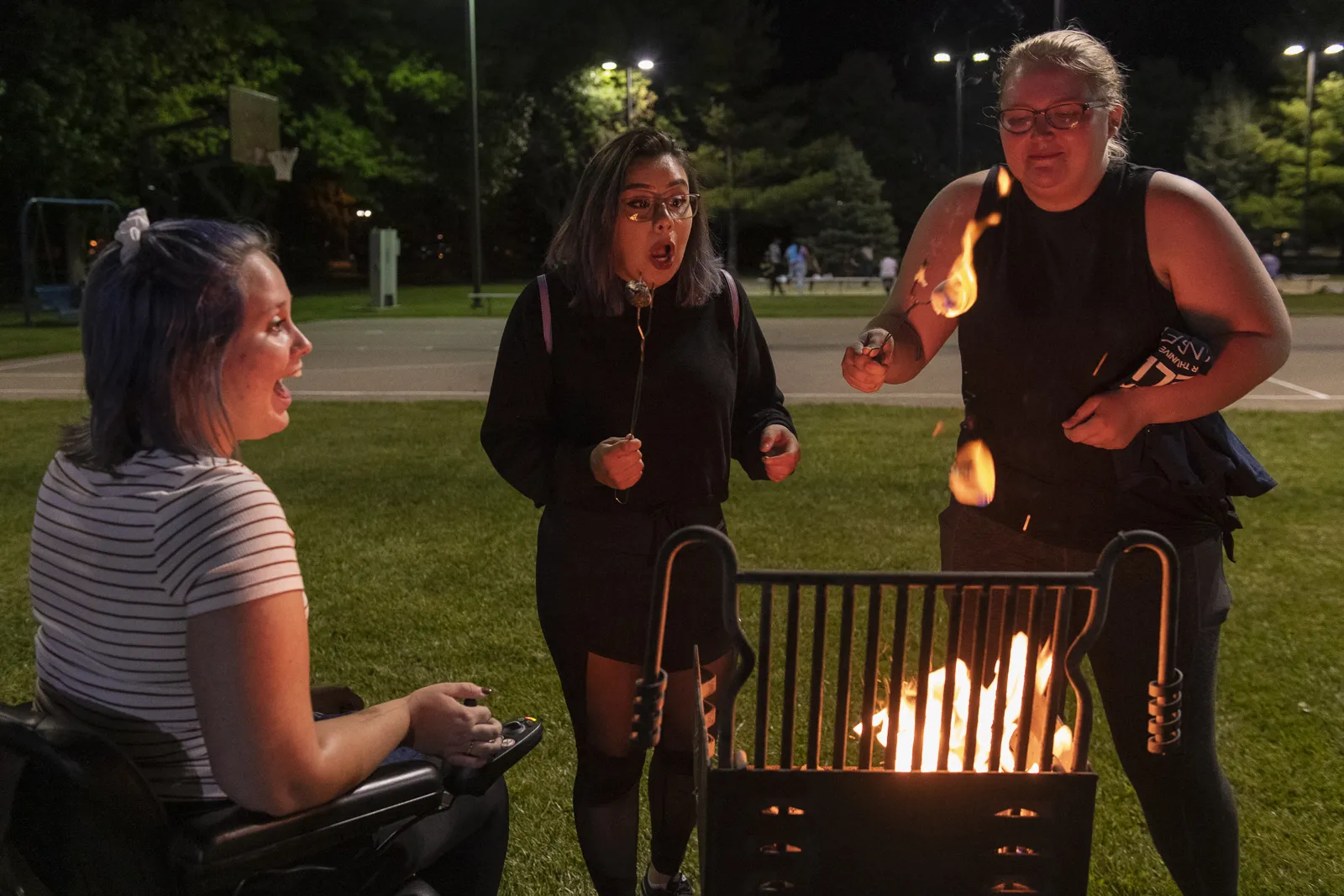 While most marshmallows make it to their owners mouth this one dove into the flames to avoid being consumed at the s'mores station during the popular Rec-palooza street party.