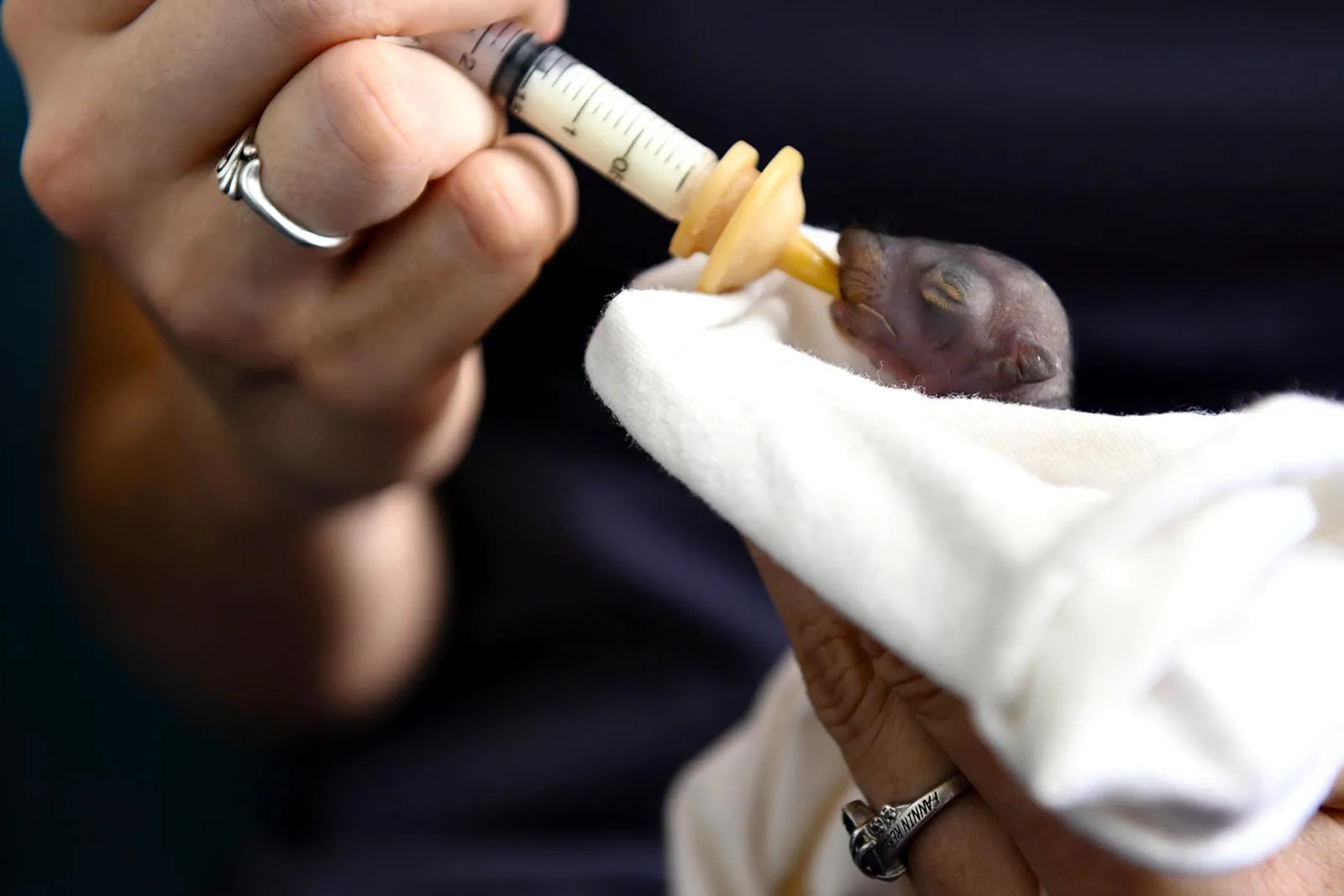 A biology student feeds a baby squirrel at an animal rescue where she volunteered over the summer.