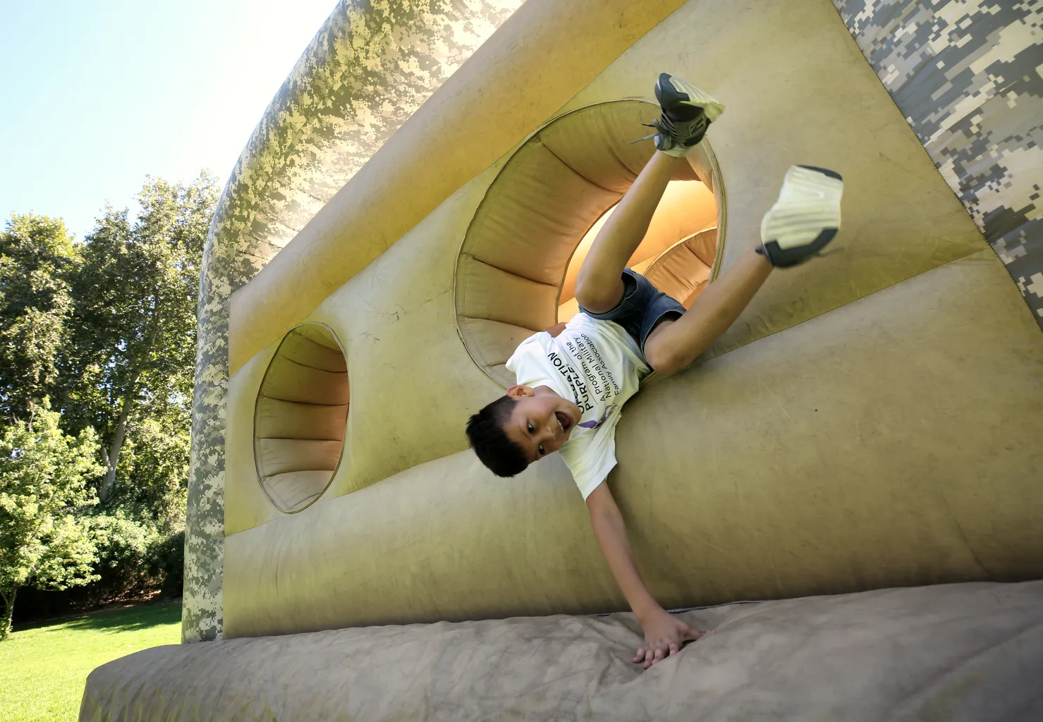Kids take their turn on an obstacle course during Operation Purple Camp on Wednesday, July 17, 2019. UCR is hosting a week-long camp called Operation Purple Camp for kids of military families and included a variety of activities like rope climbing, archery, science experiments and more.