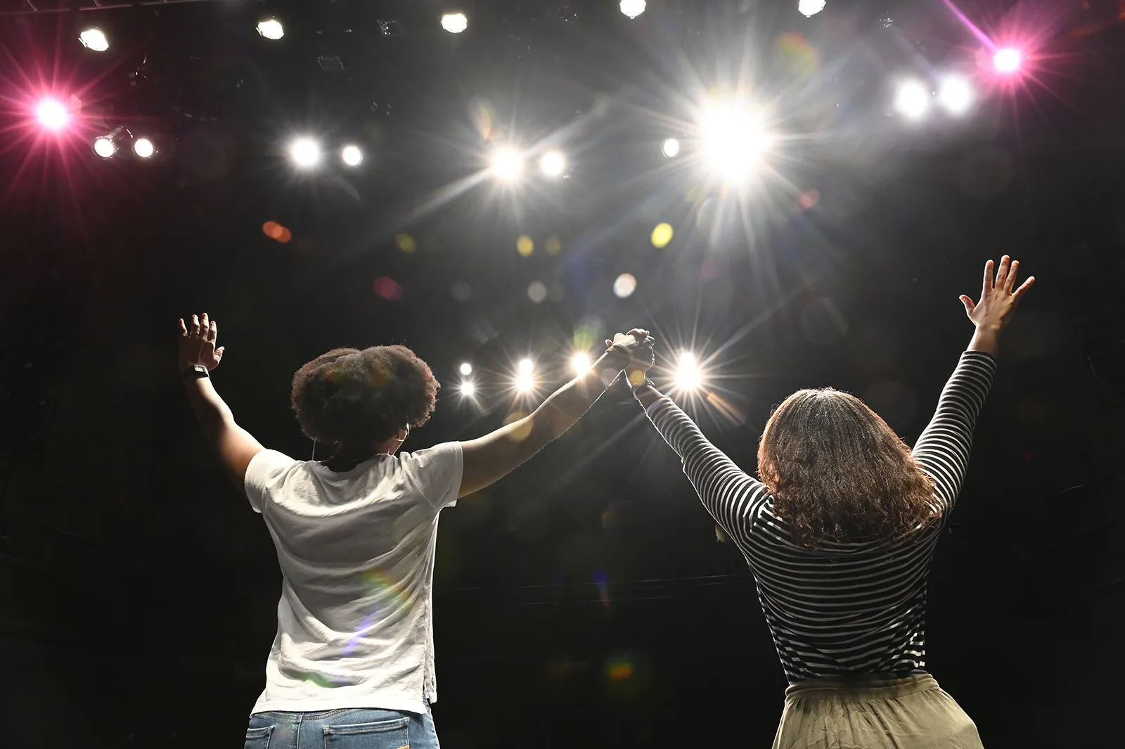 Catherine Turner reviews her notes before addressing her department's student ambassadors at their summer training.