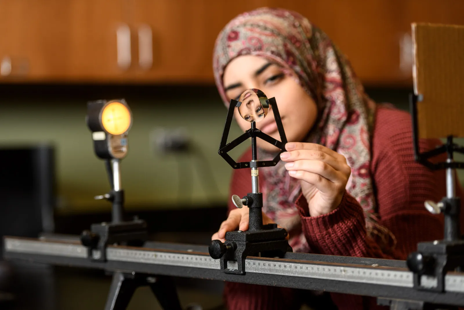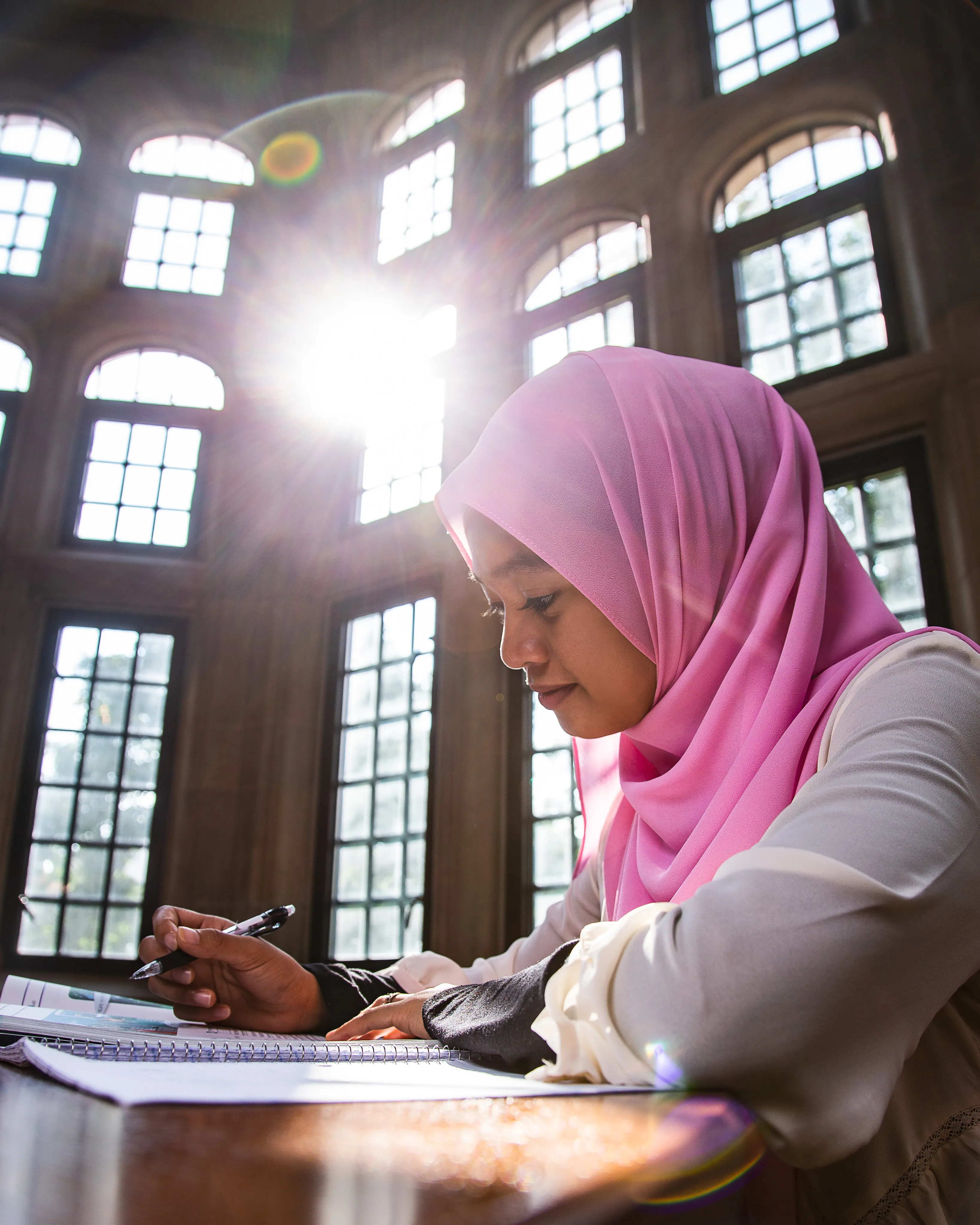 Indiana University student, Bella Azwan, studies in the south lounge in the Indiana Memorial Union.
