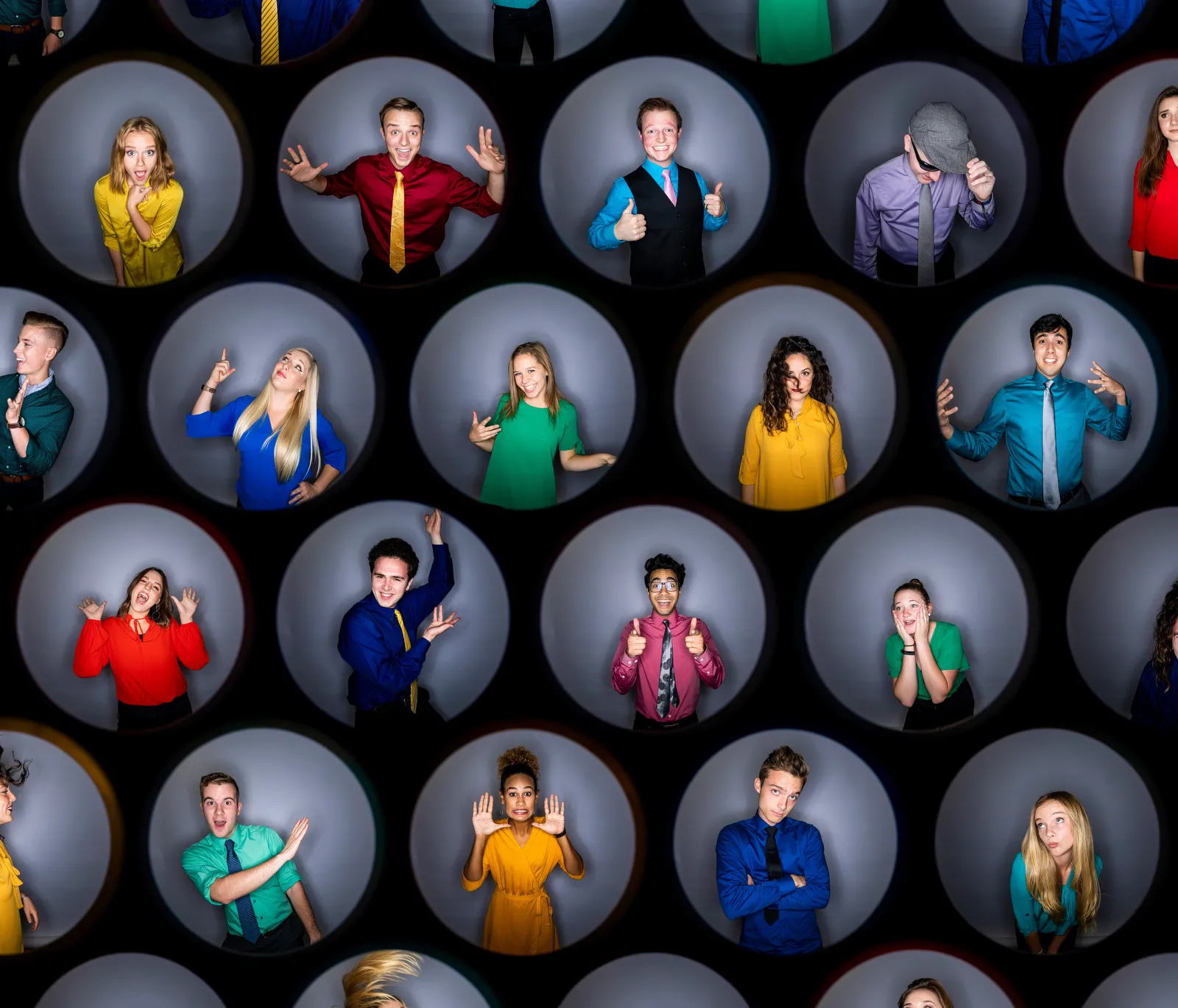 Composite of individual members of the Jazz Voices group on campus, illustrating their individuality and how they work together to create one unique voice.