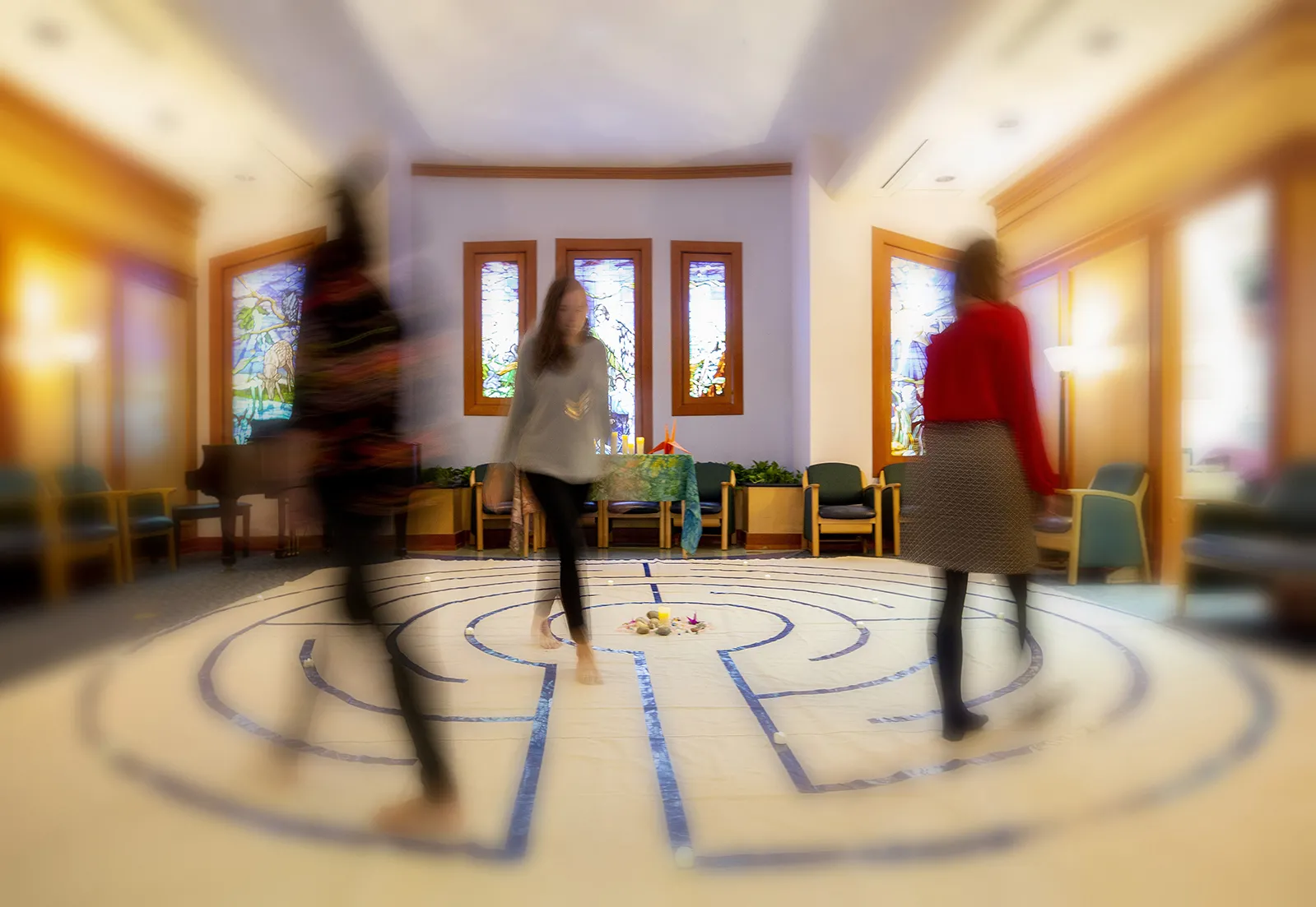 In the Children's Hospital Chapel, there is a labyrinth that appears a few times a year. The labyrinth is an ancient form of walking while meditating and praying. As you walking the circulating pattern of the labyrinth, you pray in ways that can help release grief, aid in healing or decision-making and guide you to a new sense of purpose.