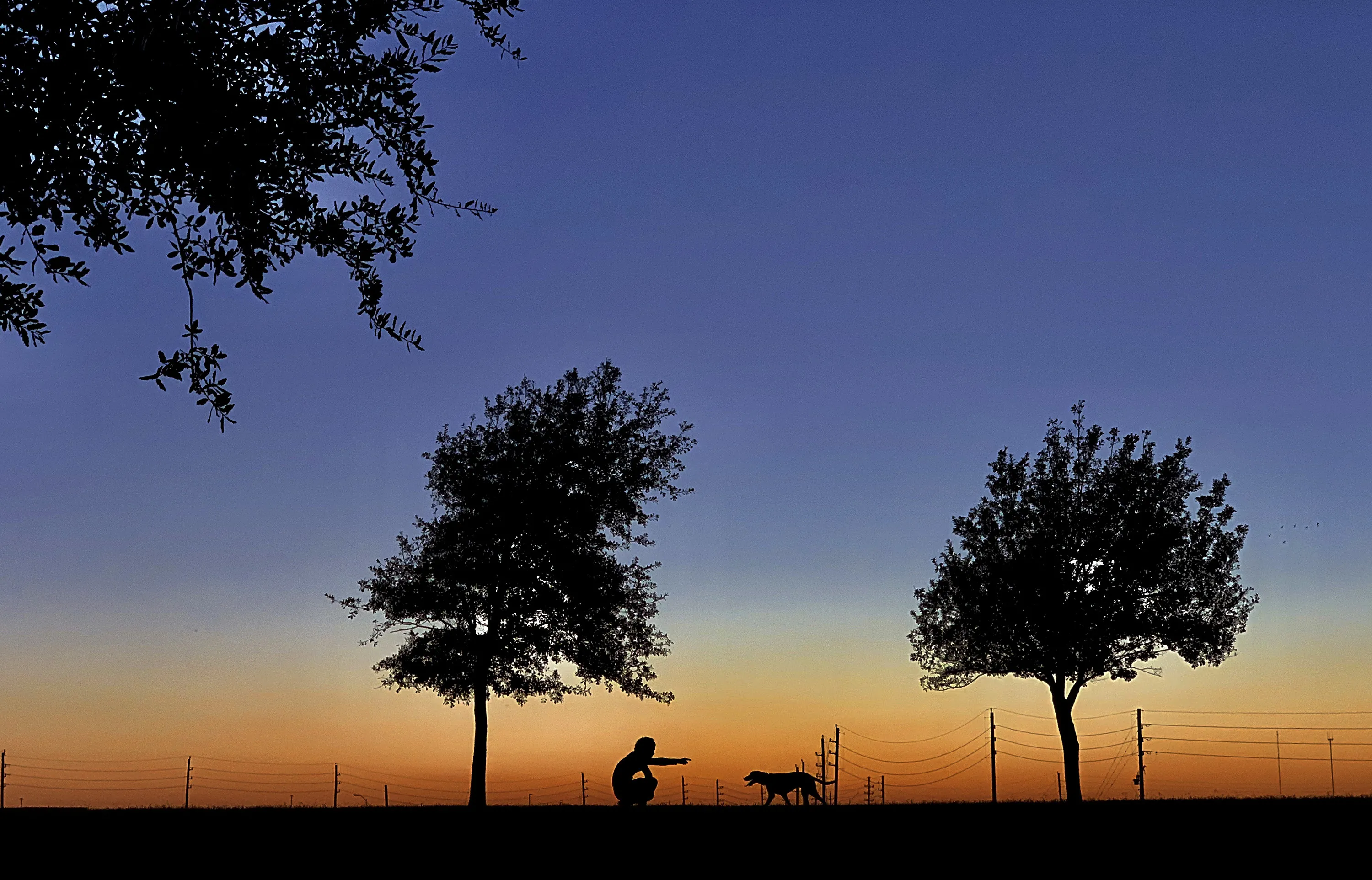 10/27/18: UHD student Joel Marwick plays with his golden retriever Cutie Pie at the South Down dog park in Pearland, Texas. This was shot for a story on student and their pets.