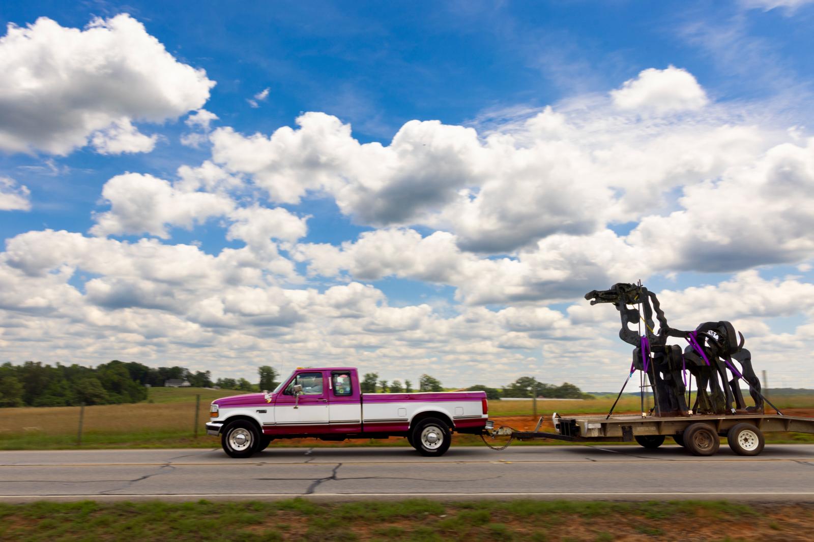 The Iron Horse, a campus landmark since 1954, is temporarily removed from it's rural location to undergo restorations.