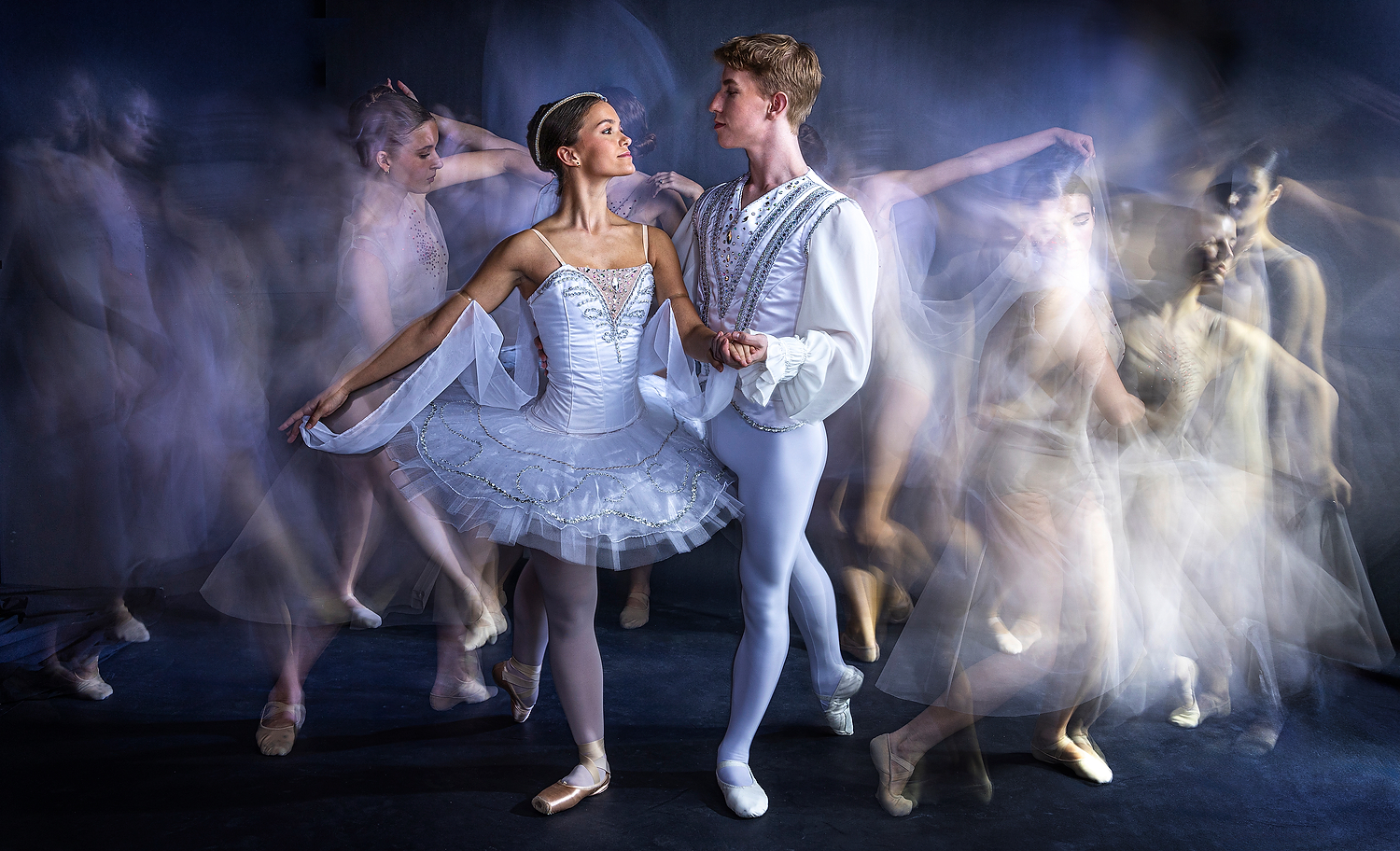 Light painting combined with studio strobe to create a dream like image for the Utah Valley University Repertory Ballet Ensemble's annual dance concert promotional collateral.