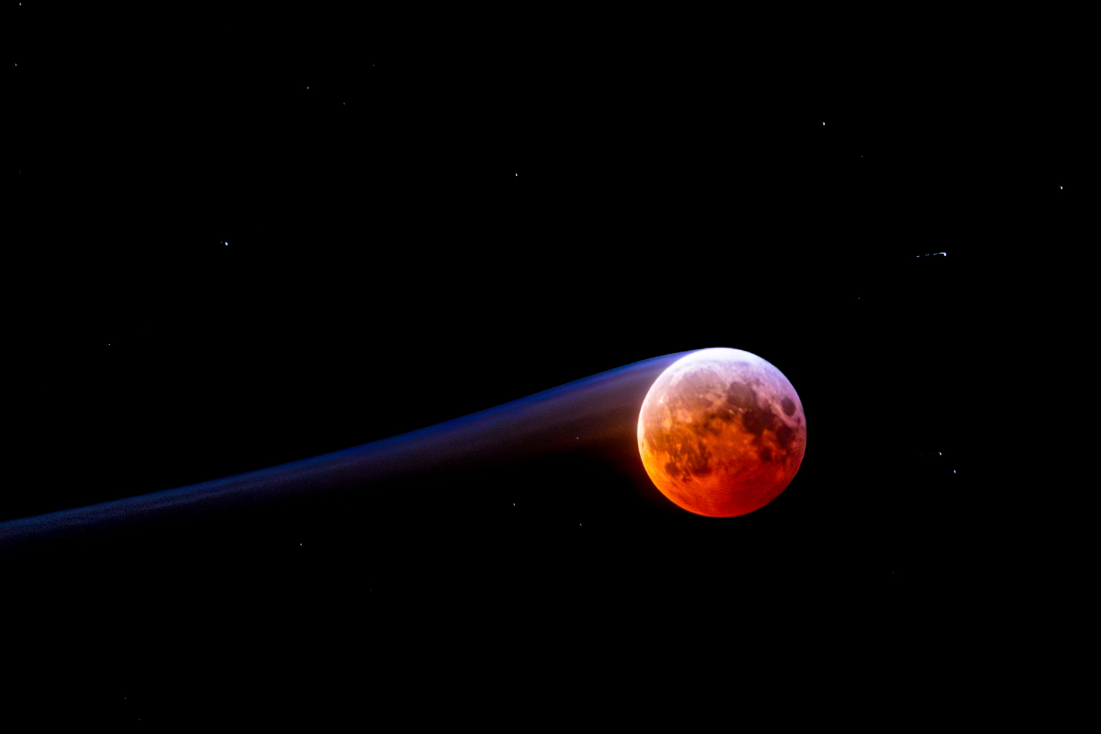 In-camera shutter drag effect of blood moon eclipse seen from South Campus in Athens, Georgia.