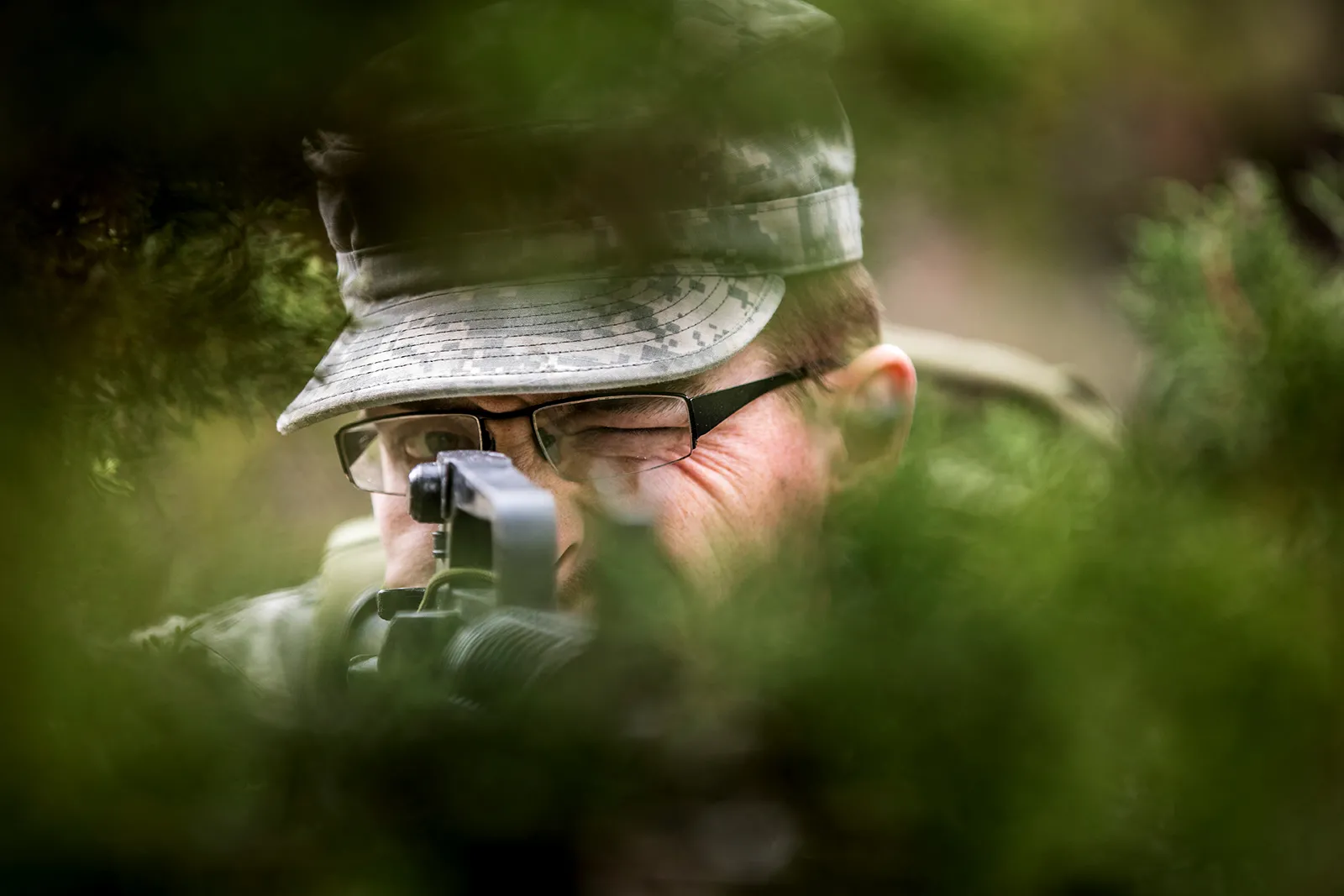 Cdt. Franco takes aim while participating in a training exercise as part of a multiple university joint operation.
