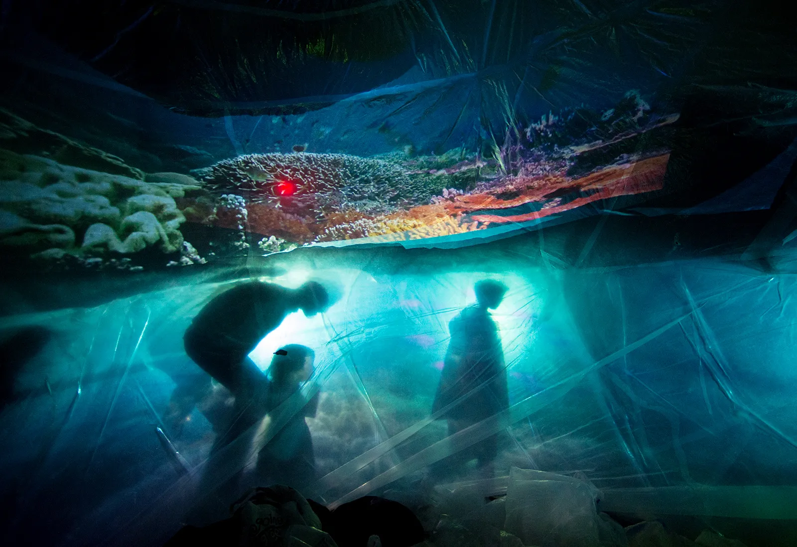 People take an underwater tour courtesy of students in the Installation and Interactive Performance art class.