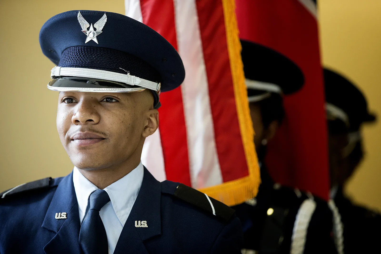The Tennessee State Air Force Color Guard present the flag during a ceremonial occasion.