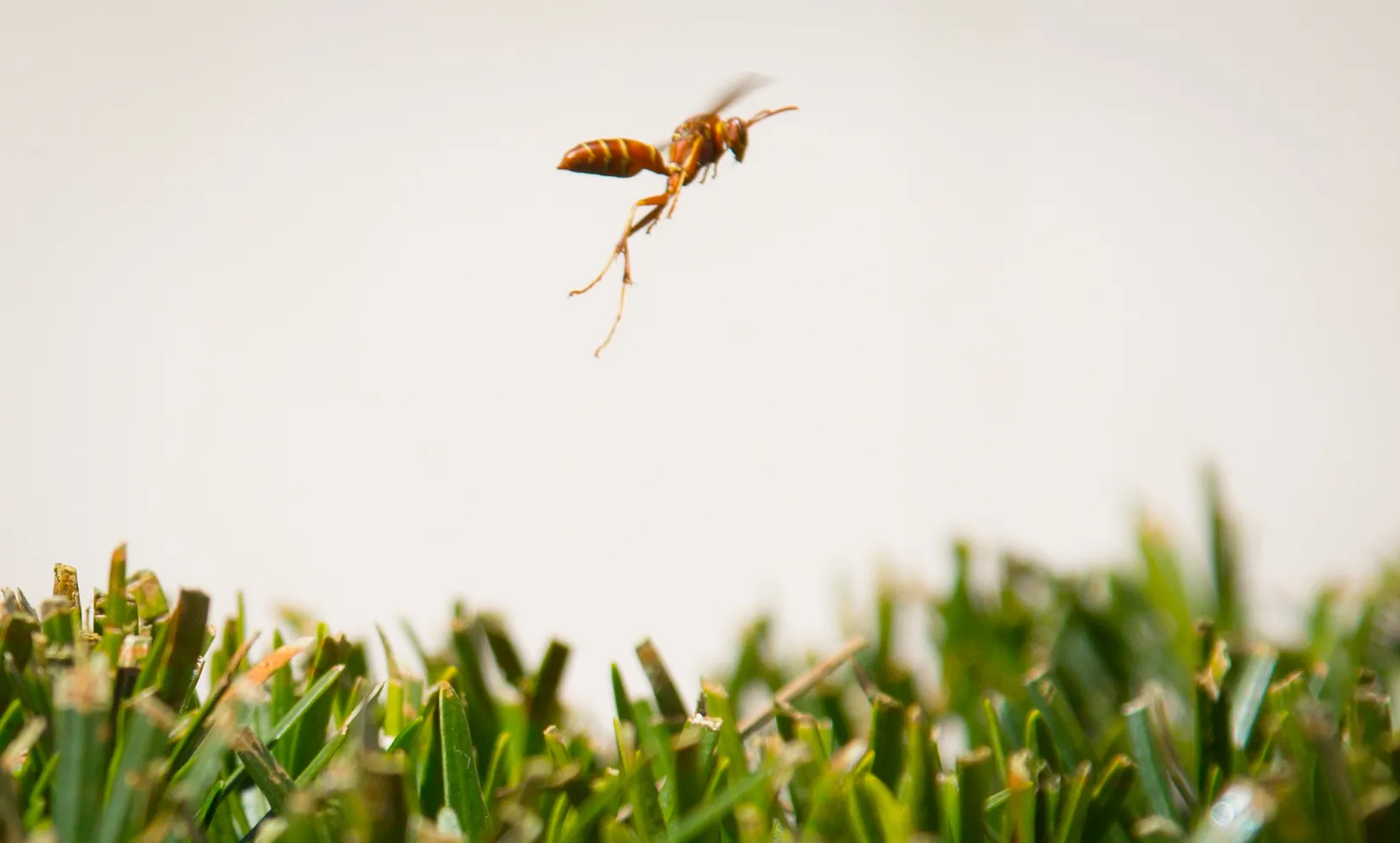 A wasp flies over a shrub on the Santa Fe College campus on Monday, March 20, 2017 in Gainesville, Fla on the first day of spring.