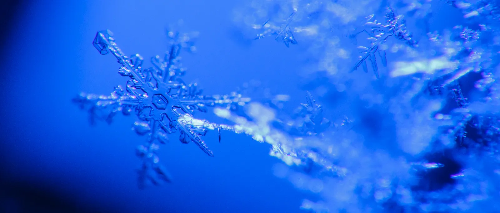 This one of my favorite images from a week long quest to photograph snowflakes in my garage for a magazine spread about winter. The photos that I produced were to go along with poems written by students about snow and winter. Images were achieved using a make-shift macro lens (70-200mm combined with a 50mm), camera on a tripod, a gelled flash, a piece of glass and some stools to hold up the glass.