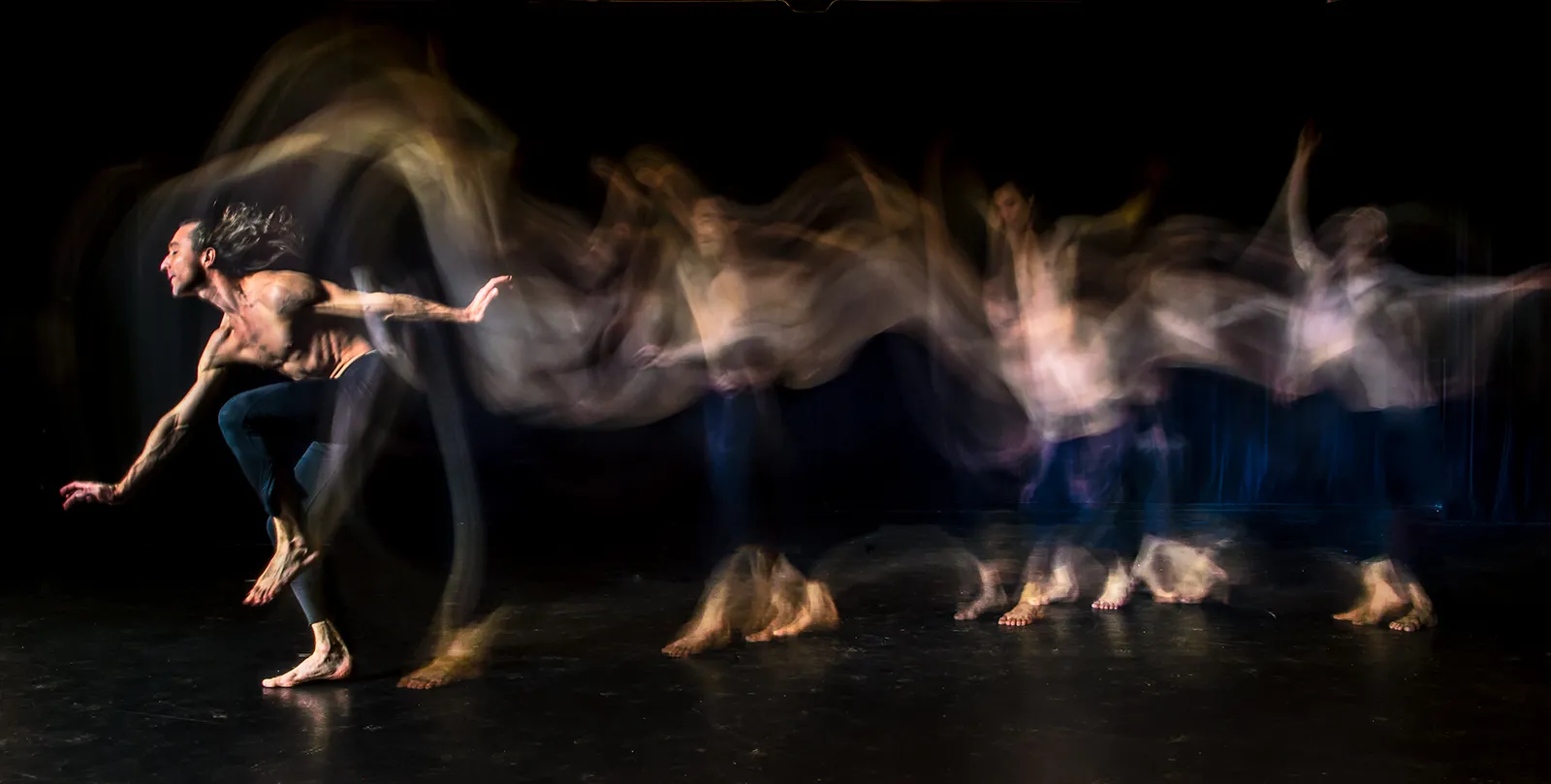 Jesse Factor, a graduate-level dance student at the University of Iowa is depicted performing his art using light-painting techniques during a photo shoot in the Space Place Theater on Tuesday, January 19, 2016.