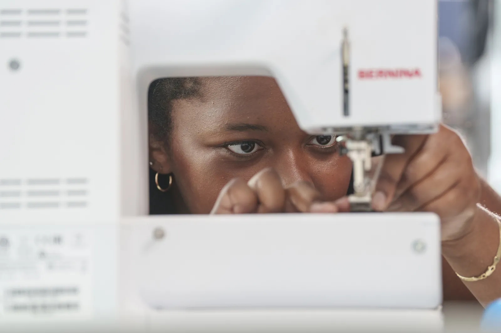 Leilani Rucker works in the sewing lab in the Wond'ry as part of her student Immersion project.