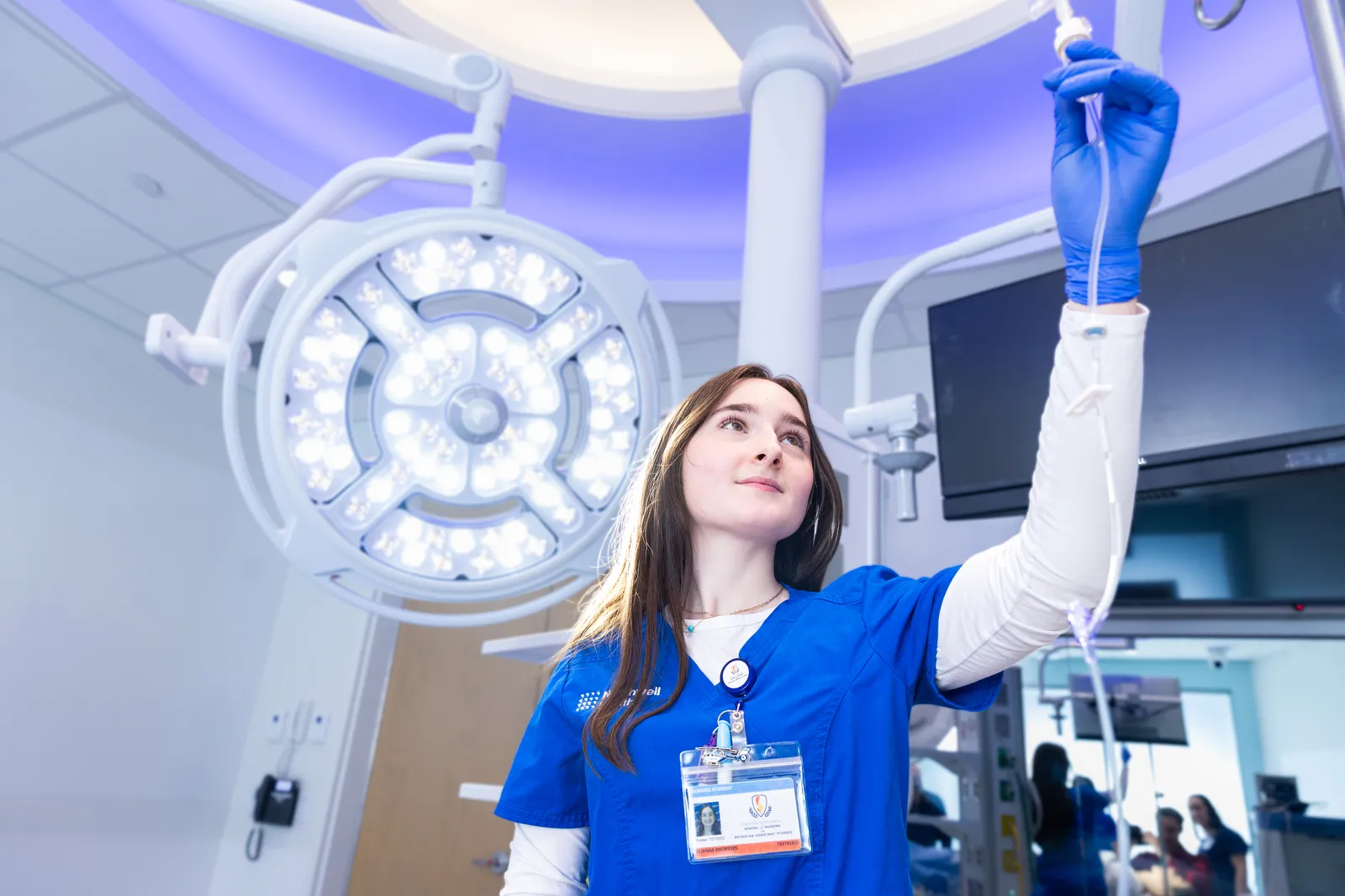 A nursing student poses for an operating room marketing shoot on December 12th, 2024.