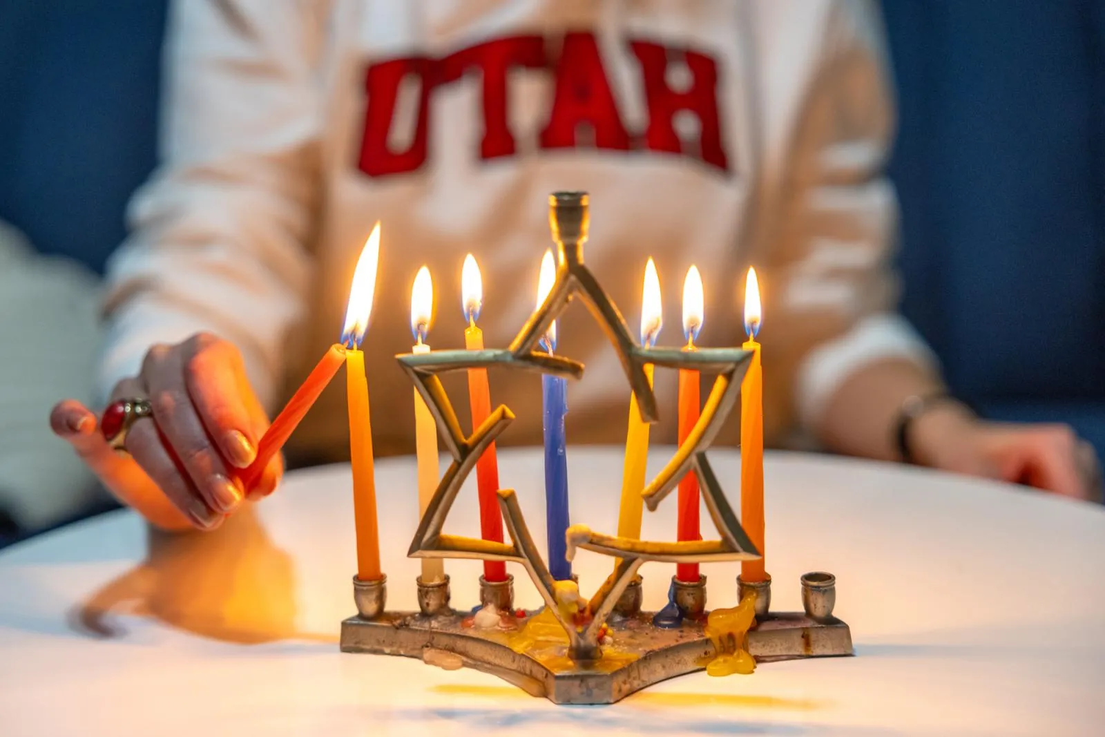 A menorah is lit on the seventh day of Hanukkah on Tuesday, December 31, 2024.