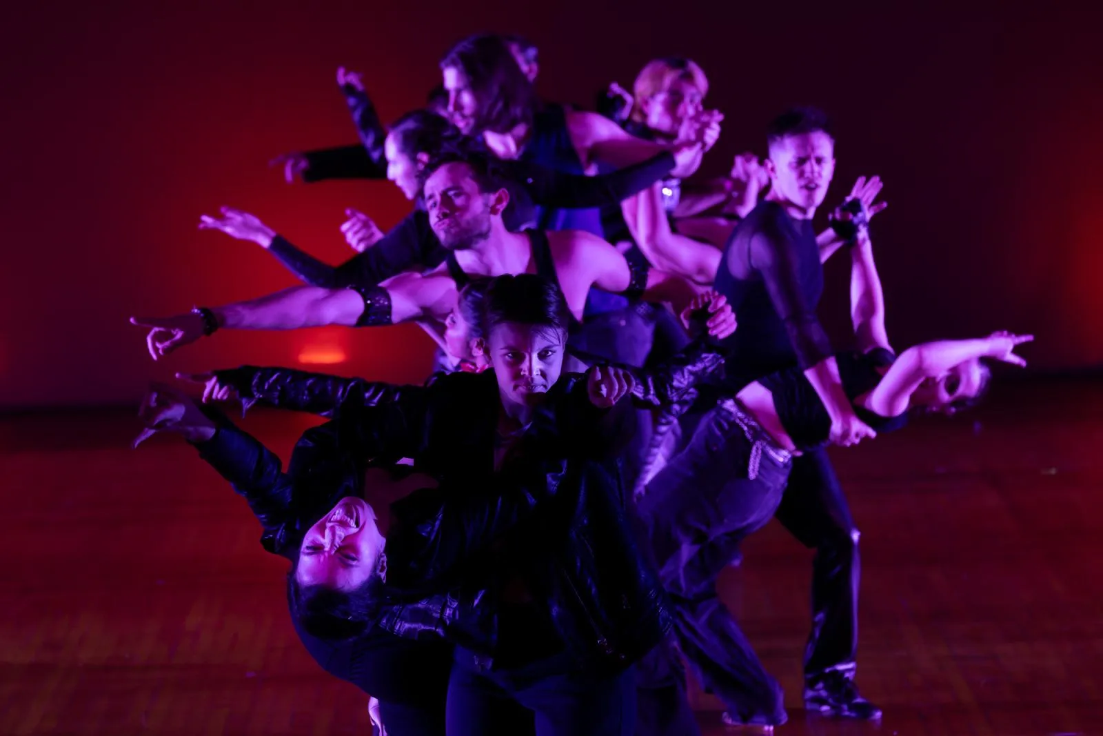 Student performers from the university's Ballroom Performance Group rehearse before their annual showcase.