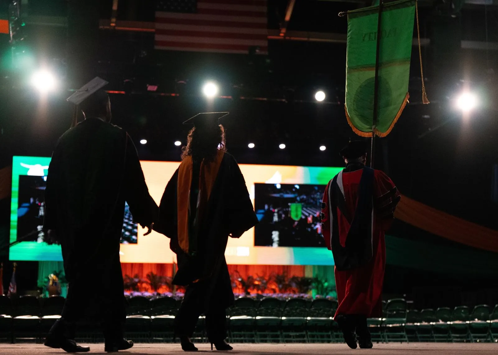 The first group of Faculty and graduates leading the opening Procession into the University of Miami Fall 2024 Commencement Ceremony.