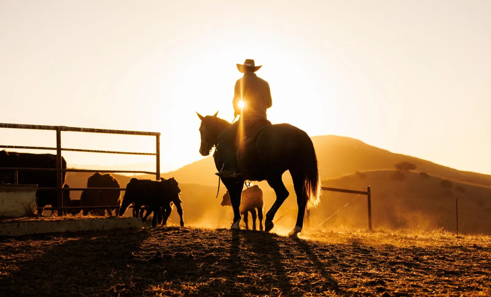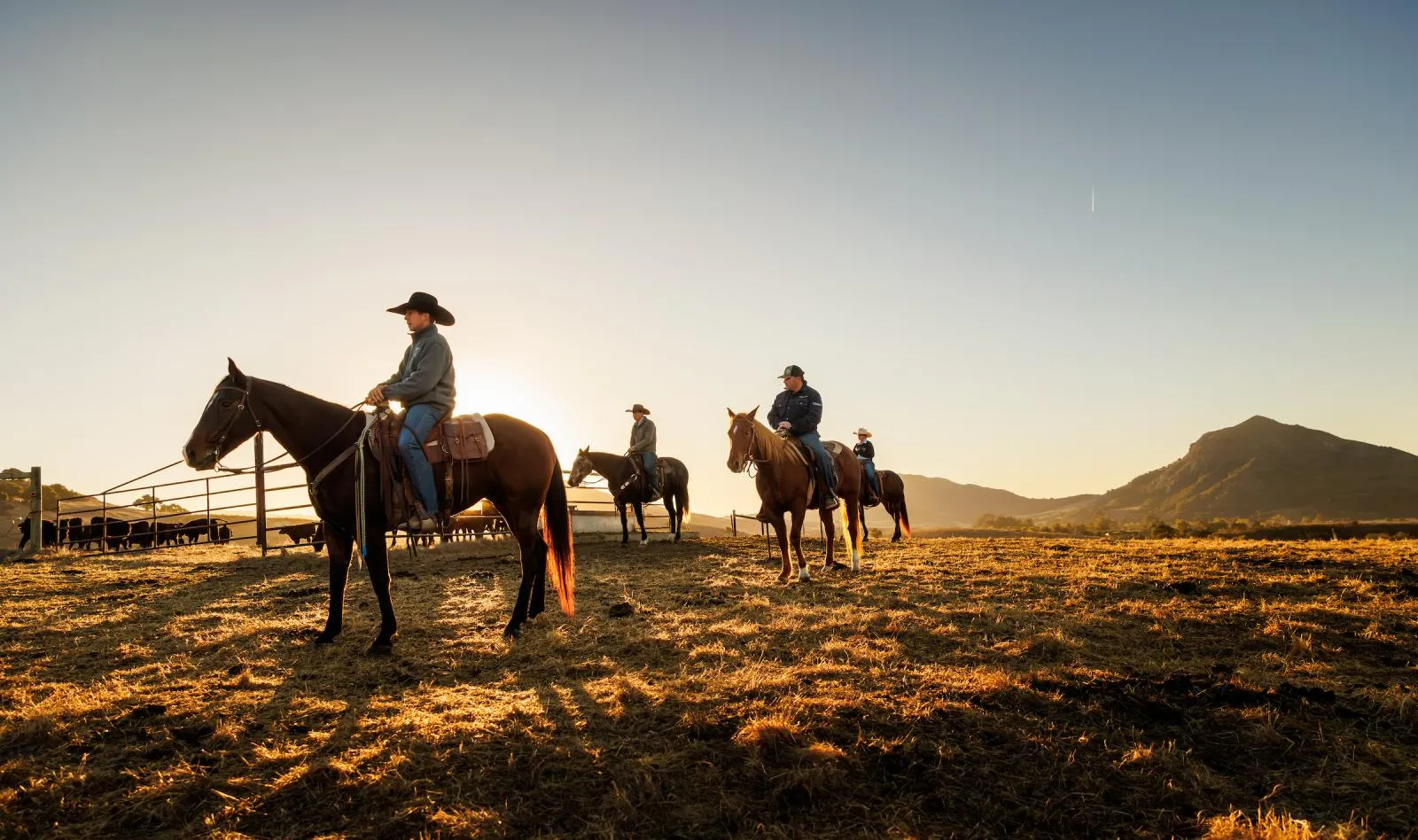 As day breaks students on horseback drive a herd of the university's beef cattle from one grazing field to another.