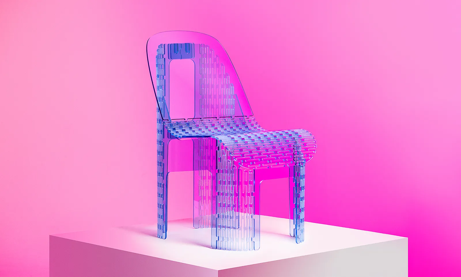 A futuristic designed, origami-inspired Flex Chair, cut out of a single piece of flat material and folded into shape.
