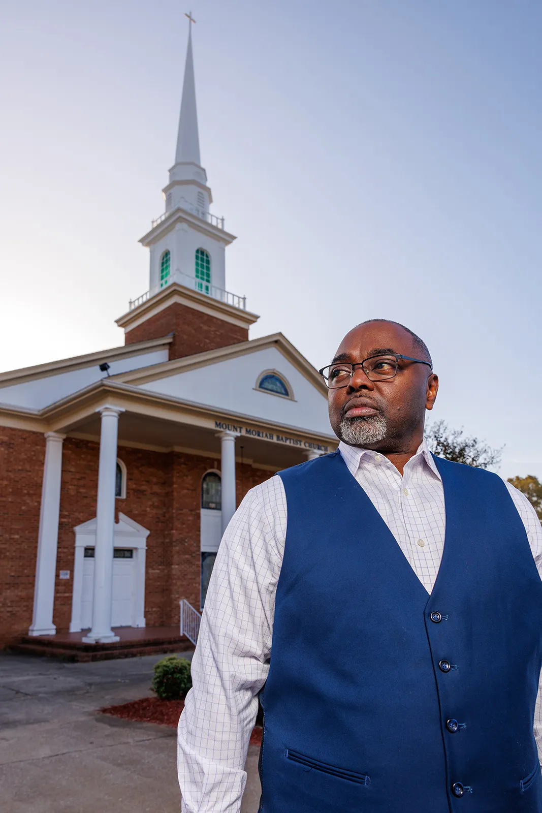 Marlon Smith, the new director of the Center for Africana & African American Studies at the University of South Carolina Upstate, is photographed Oct. 31, 2024, for a story in Upstate Magazine. Smith requested a location of African-American historical importance in the Spartanburg area. He is standing in front of Mount Moriah Baptist Church, the first African-American Baptist Church in the city of Spartanburg