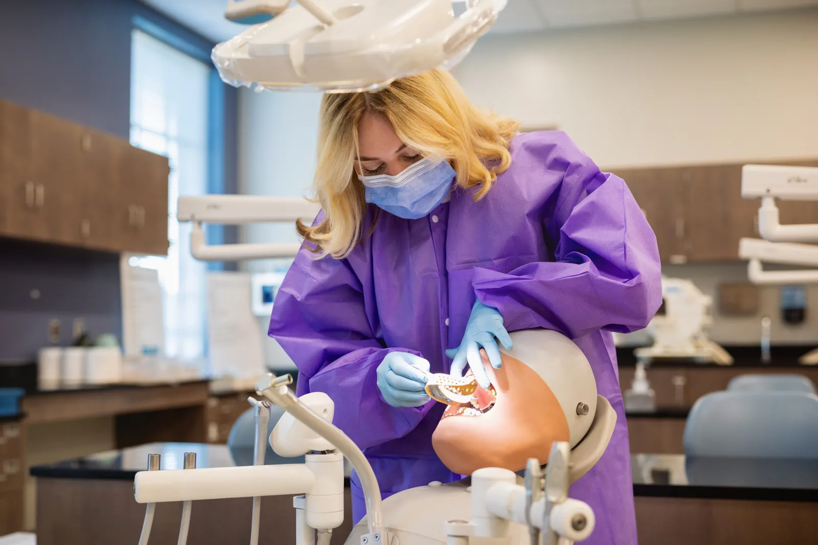A group of aerospace students examine the proper of a Piper Archer during morning lesson.