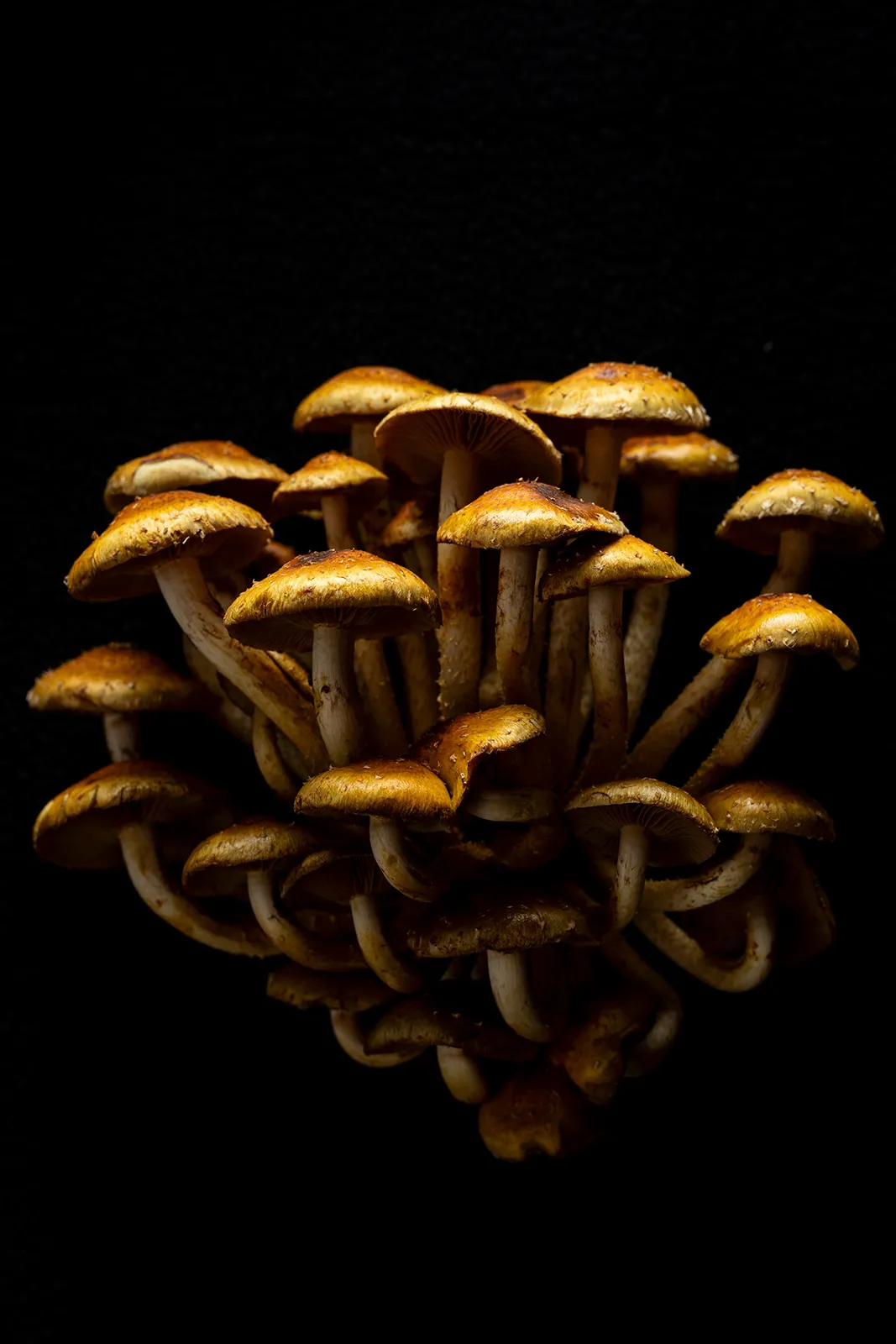 A cluster of chestnut mushrooms for an alumni magazine feature about a local fungi farmer.