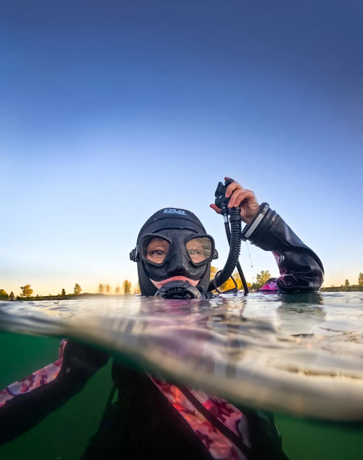 Shot as part of an MSc grad student profile. She is a Certified Research Diver doing DNA sampling on at-risk fish species. Over/underwater composite. Lots of room up top for text.