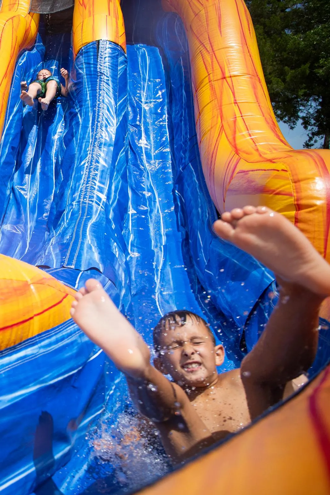 Summer campers at the University of Florida 4-H Camp Timpoochee enjoy a water slide.
