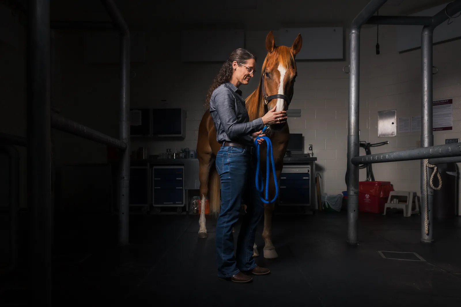 Dr. Kati Glass in an equine exam room at the Texas A&M Large Animal hospital.