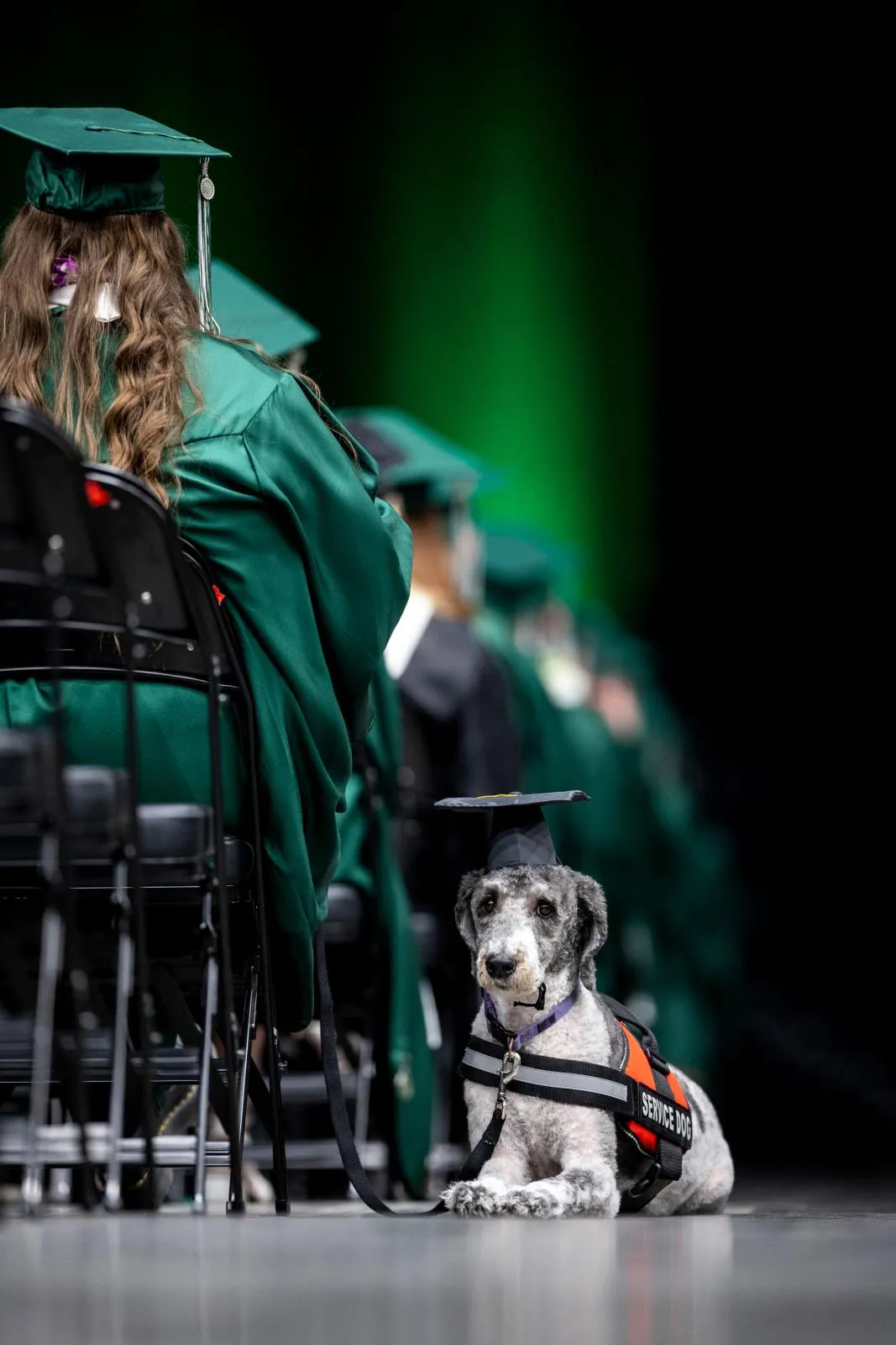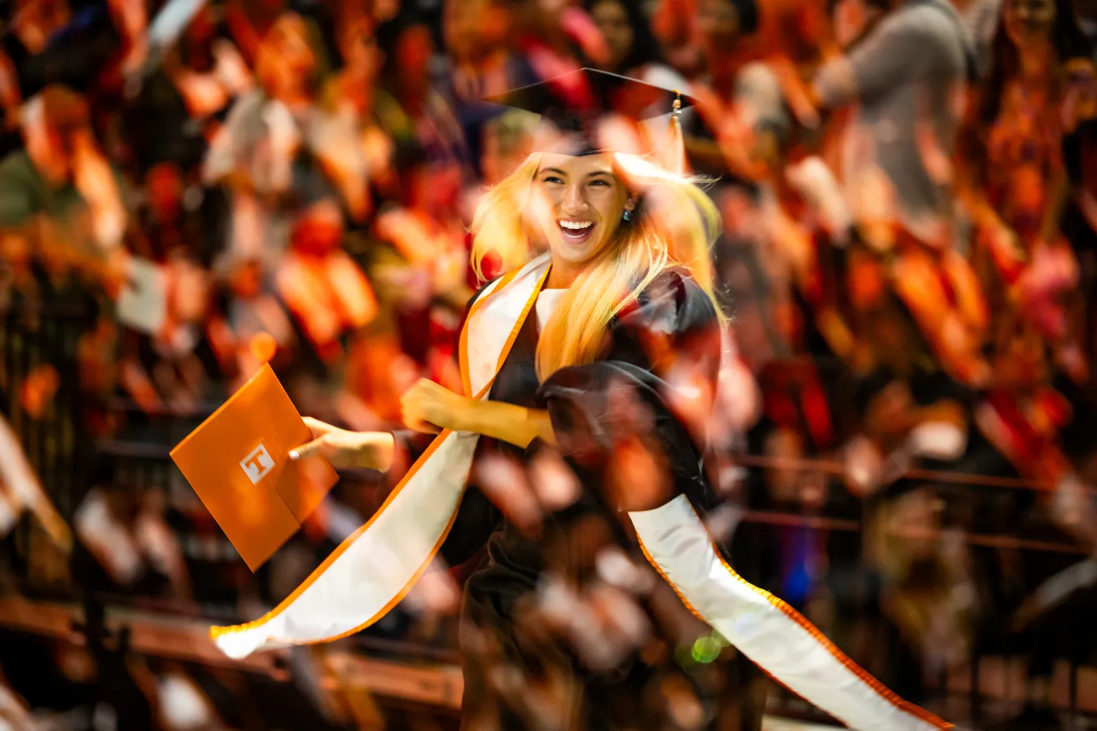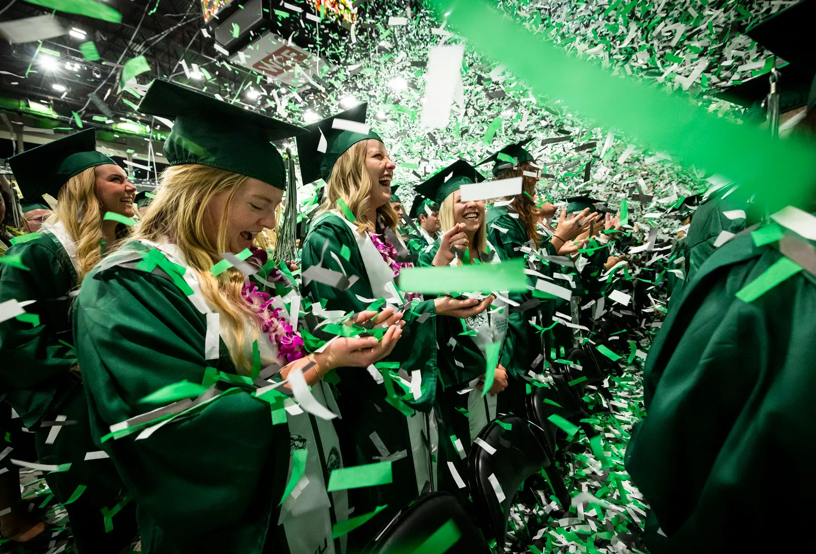 Students celebrating their graduation during Utah Valley University's Commencement ceremony.