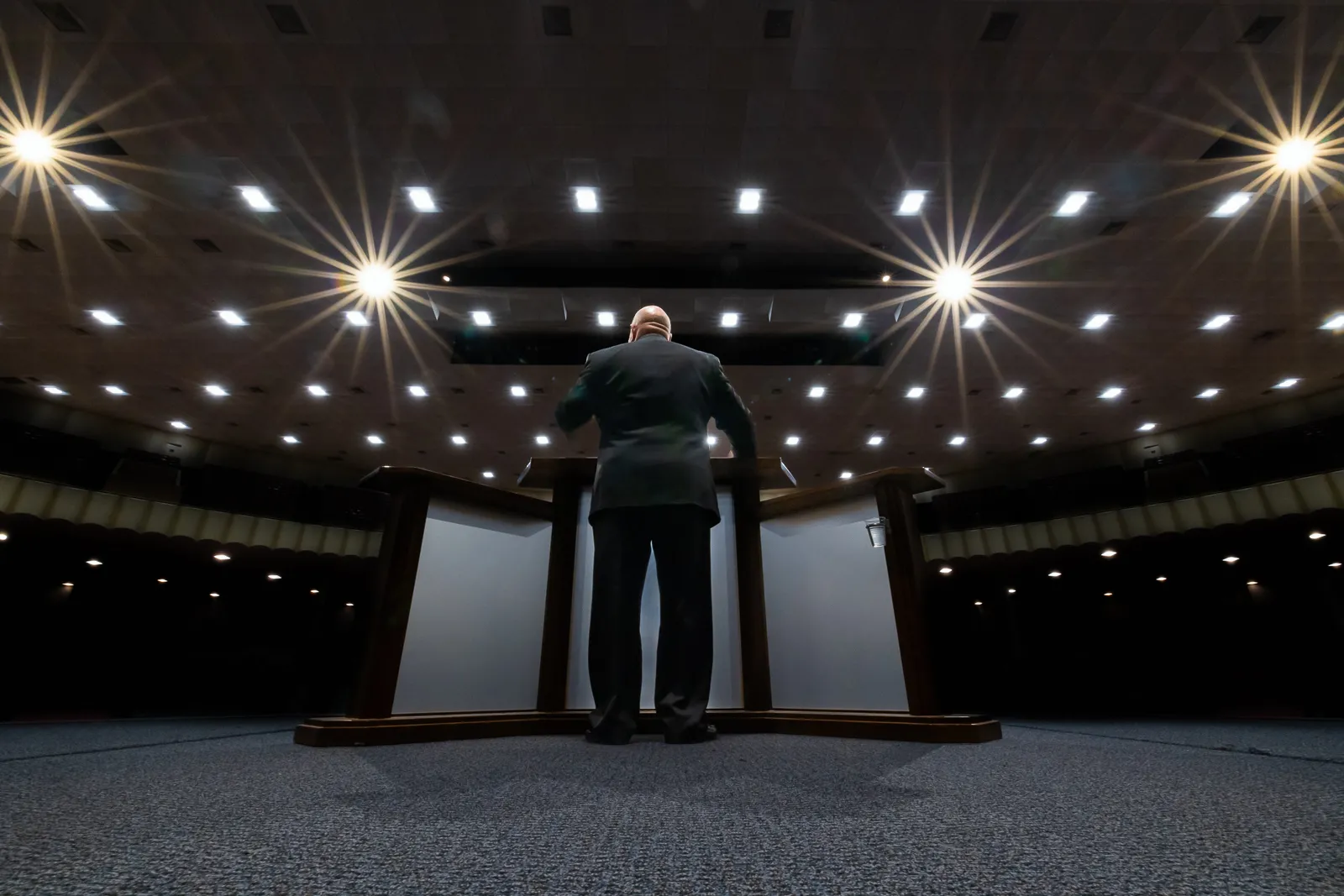 After one of the conference presentations. I asked him if I could snap a few photos of him at the pulpit, and I had fun with it. :D