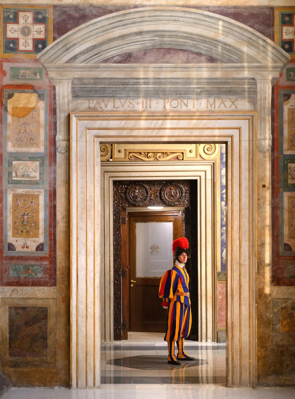 A member of the Swiss Guard, known as "The world's smallest army," stands in the Apostolic Palace in Vatican City.