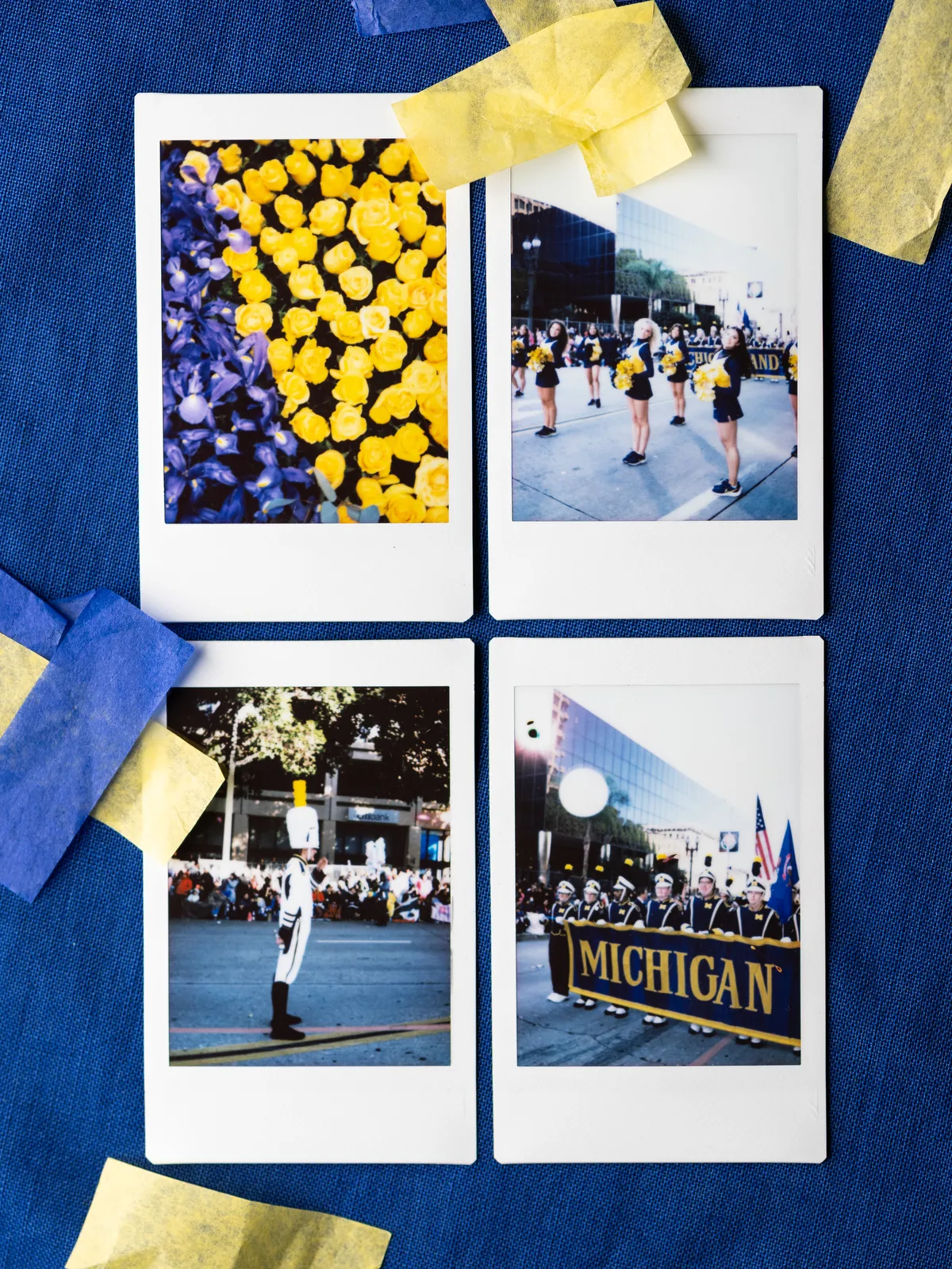 A selection of Instax photos from Michigan's appearance in the 2024 Rose Bowl Parade on Monday, Jan. 1, 2024 in Pasadena, Cali.
