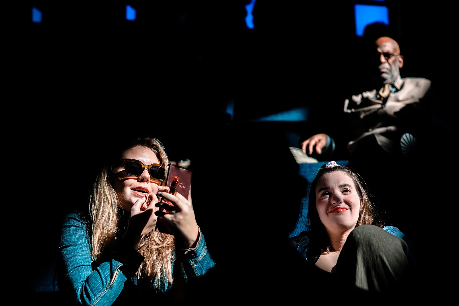 Students and members of the community wait in the holding room for their chance to appear in the movie "On Fire," which was filmed on campus on November 9, 2023.