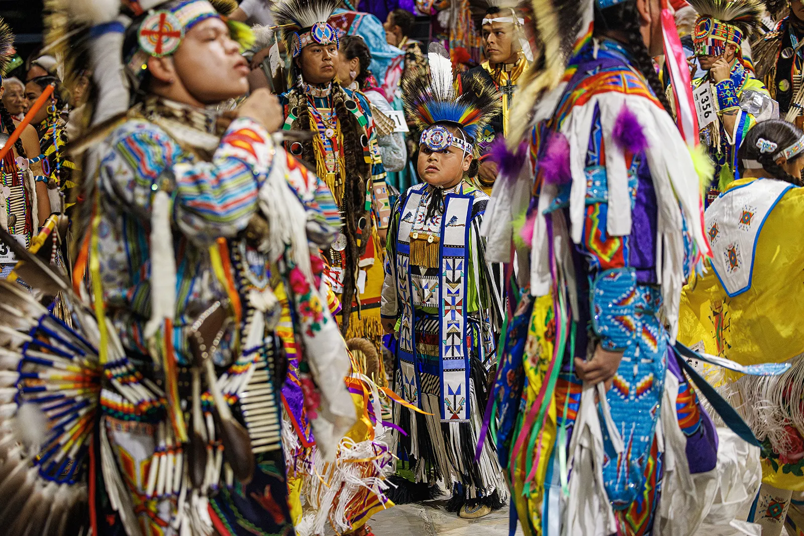 A youth watches his elders enter the arena at the Black Hills Pow Wow in Rapid City, South Dakota. Photographed while working for several days on the Pine Ridge Reservation to document the Peaceful Means program championed by Nebraska researcher Katie Edwards. The program wants to stop sexual violence on the Pine Ridge Reservation by educating school-age children. One facet is to help develop the pride in the youth's heritage and the pow wow was a good way to visualize that.