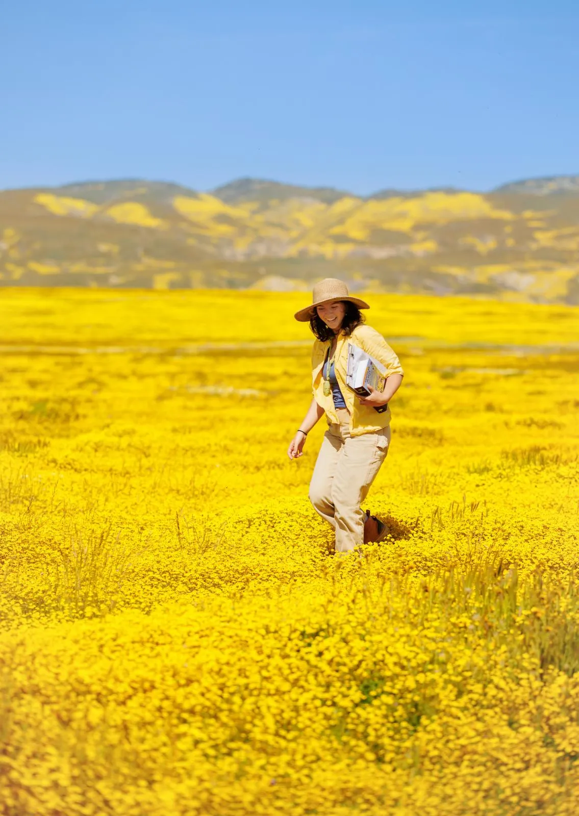During a Field Botany - California Plant Diversity class field trip, third-year biology student and field botany teaching assistant Caitlin Robertson explores the recent wildflower super bloom near the Carrizo Plain National Monument.