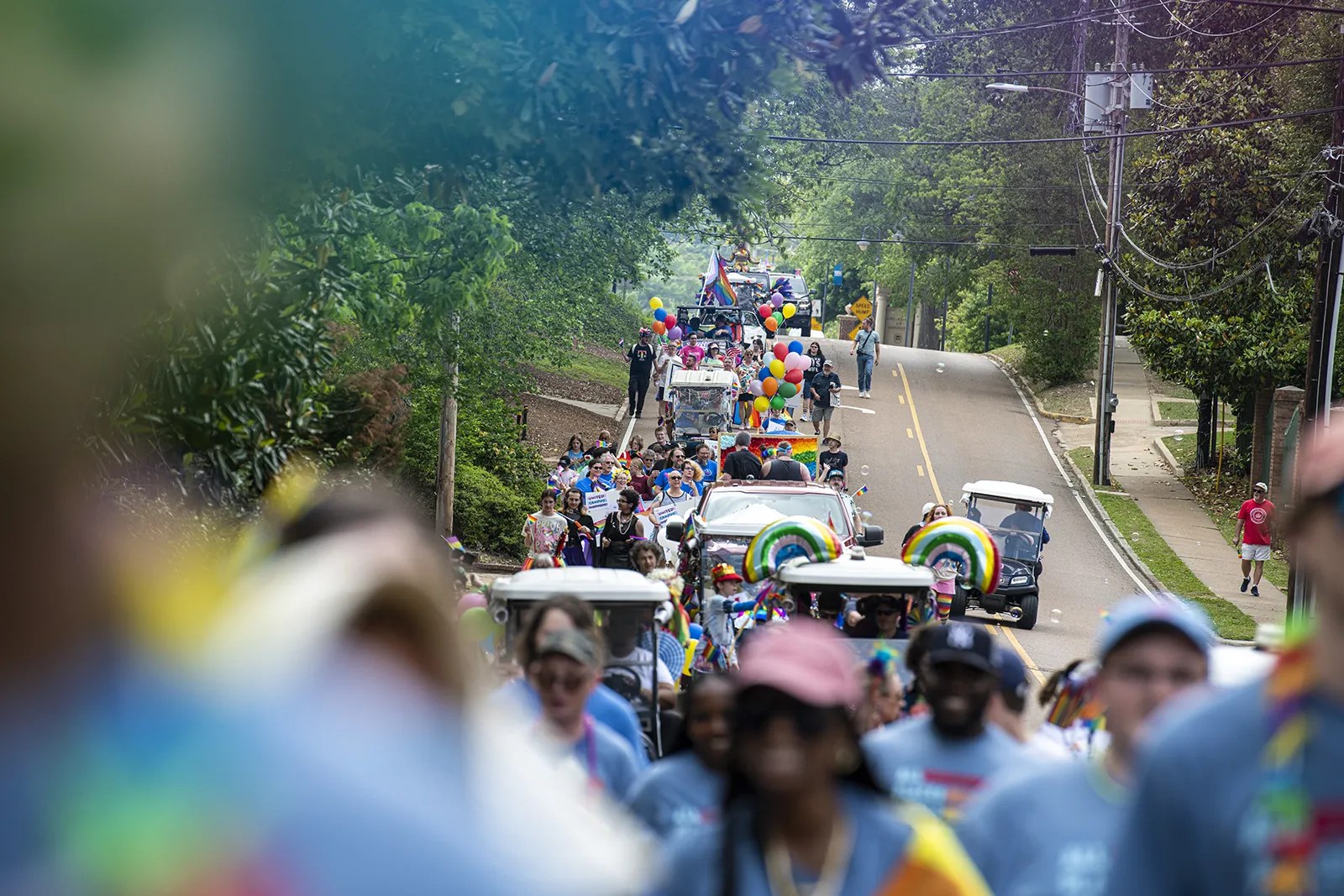 Students, faculty, staff of The University of Mississippi, and the Oxford community attend the 7th annual Oxford Pride Parade sponsored by the Sarah Isom Center for Women and Gender Studies.