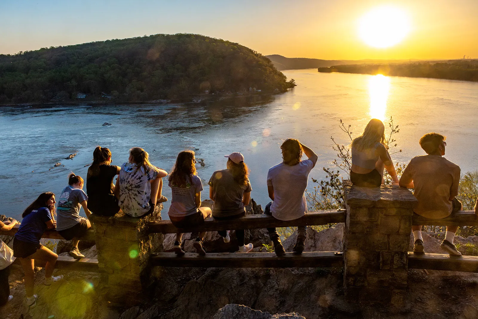 Students travel to nearby Chickies Rock to watch the sunset over the Susquehanna River for a respite from end of semester stresses.
