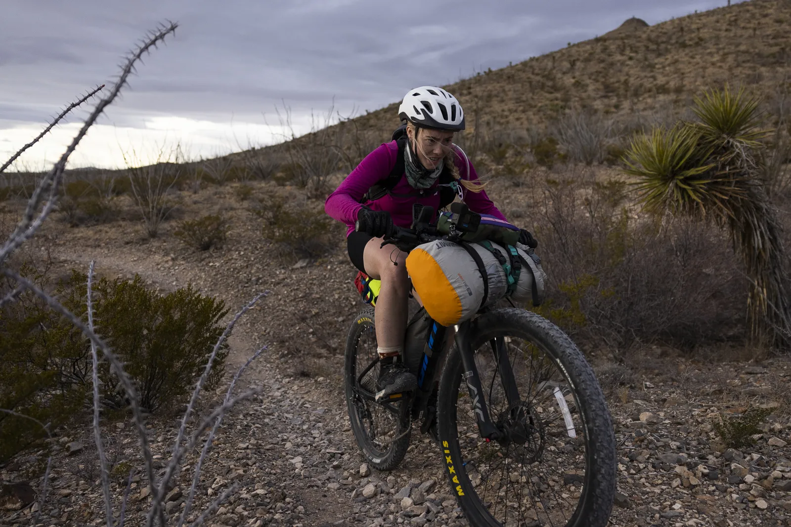 Lindsey Dube rides the Sierra Vista trail during a bikepacking trip for the Texas Tech University Adventure Media class at the Organ Mountains Desert Peaks National Monument in Doña Ana County, New Mexico.